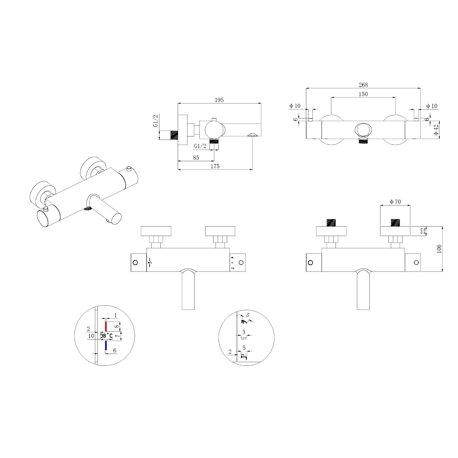 Deze thermostaatkraan is van het merk Boss & Wessing en staat garant voor kwaliteit en design. De badkraan heeft een prachtige chrome afwerking en is hiermee goed te combineren in een badkamer met andere chrome elementen. De keramische schijven in de badkraan zorgen er voor dat de douchethermostaat een lange levensduur heeft. De douchethermostaat heeft een hart-op- hart van 15 centimeter.