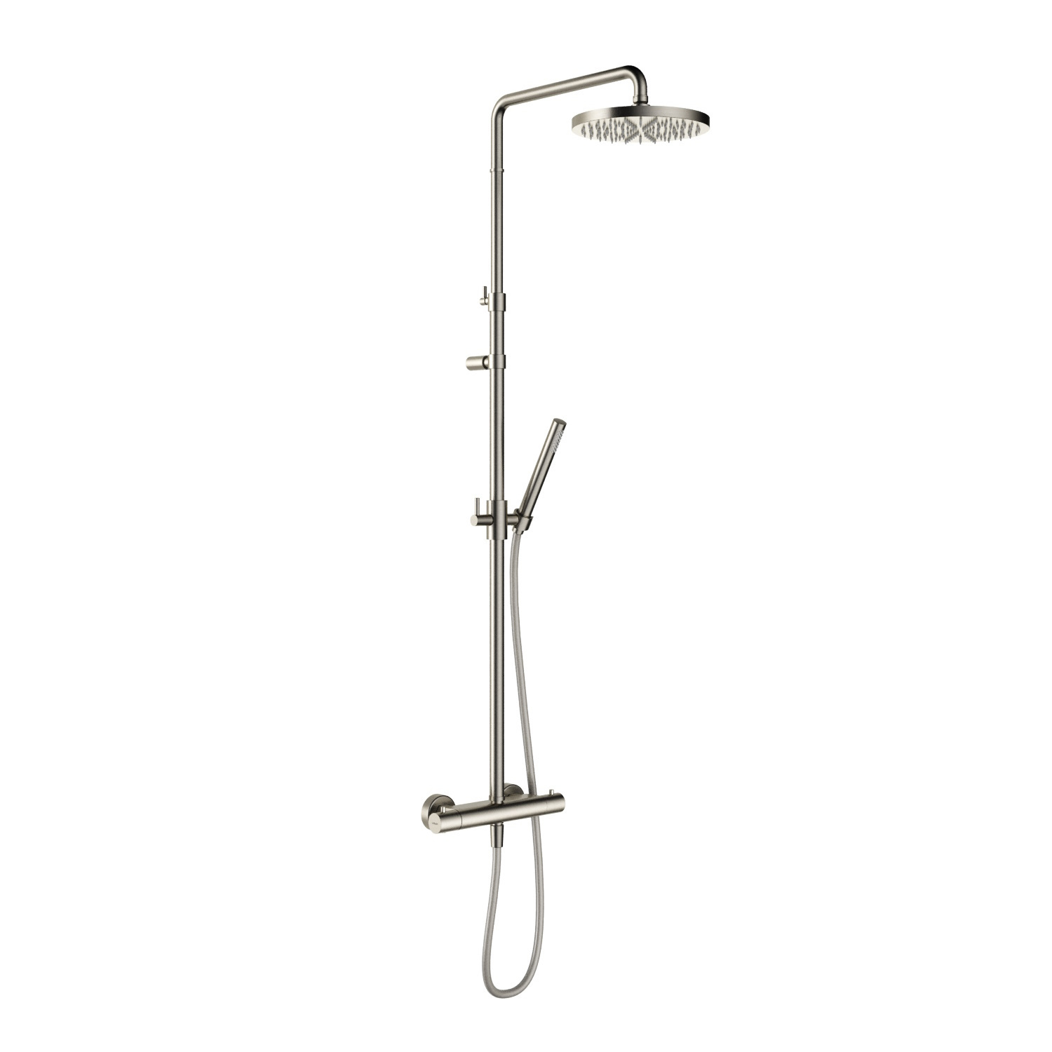 Deze complete opbouw stortdoucheset van het merk Hotbath komt uit de serie ace. De stortdouche heeft een tijdloos design en dat volledig van geborsteld Nikkel. De stortdoucheset heeft een hoogte van 98 cm. Het is gemaakt van messing, een zeer sterk materiaal dat goed bestand is tegen vocht en warmte.
