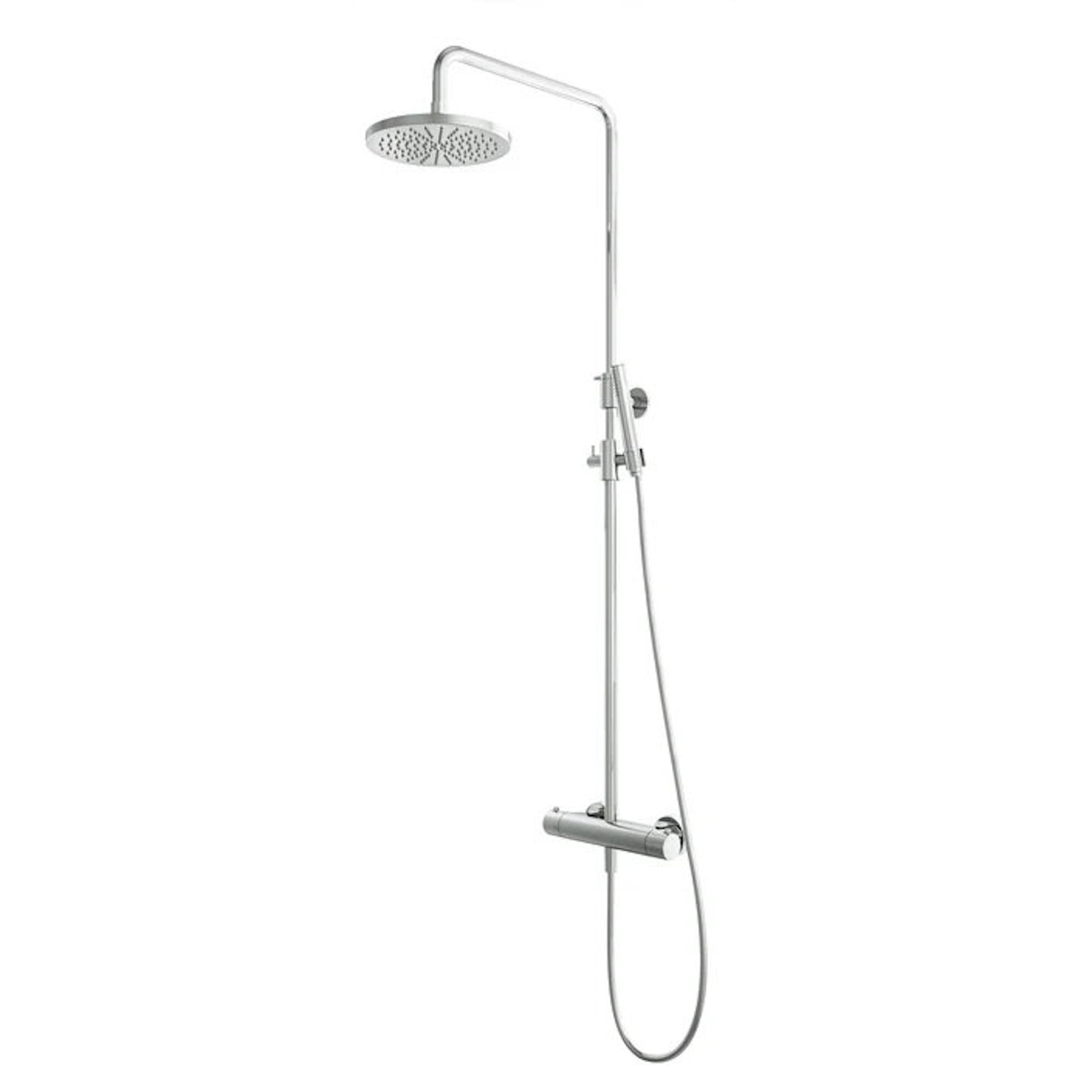 De set bestaat uit een thermostaatkraan, een staafhanddouche met doucheslang, een ronde hoofddouche met een diameter van 20 cm en een glijstang. Een complete regendouche in één dus!