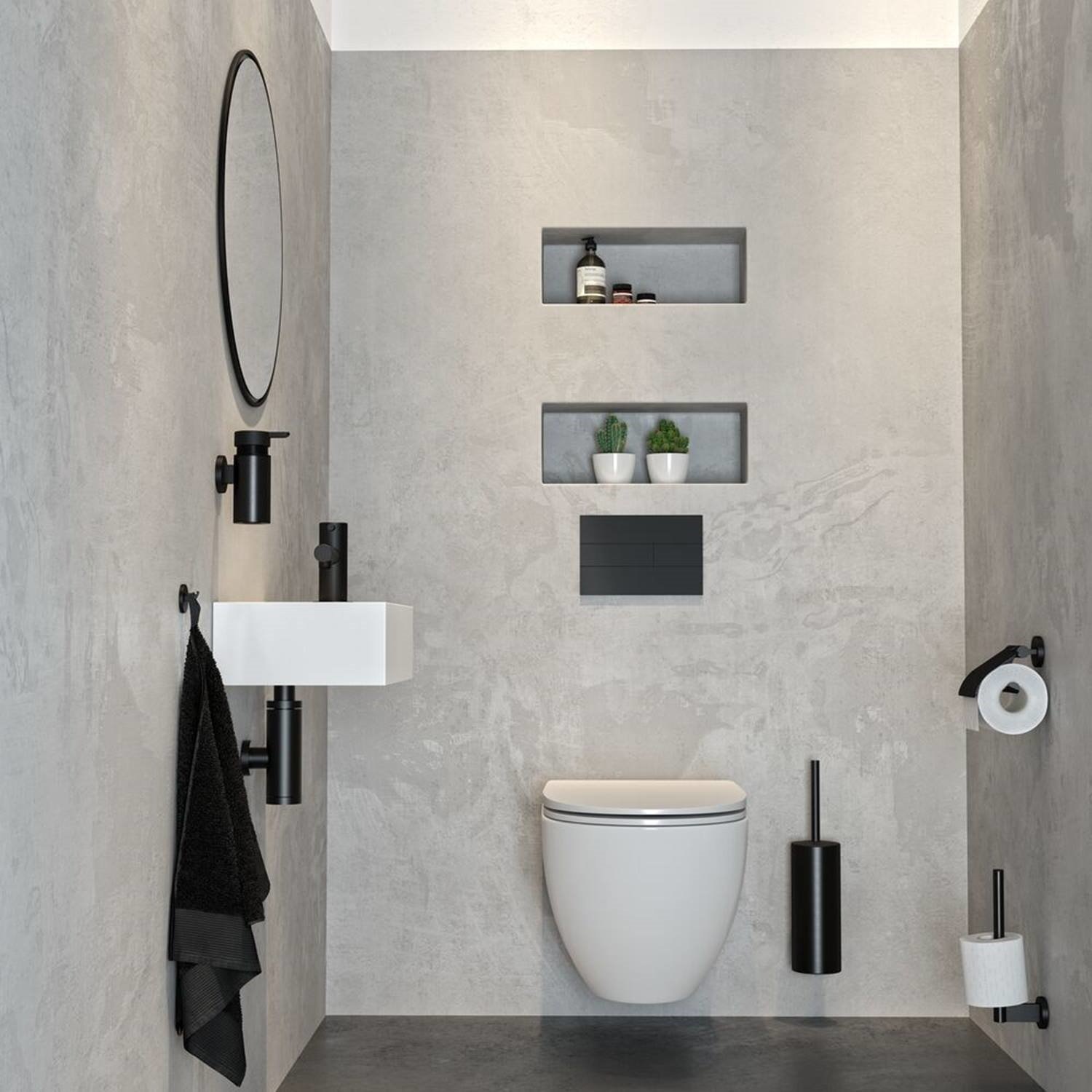 De Toiletrolhouder uit de Noon serie van Tiger wordt geleverd in een zwarte kleur met de moderne matte afwerking. Met deze kleur kunt u gemakkelijk met andere artikelen combineren in uw badkamer of toilet. De houder valt niet alleen op met zijn uiterlijk, maar ook omdat hij zeer praktisch is. Zo kan de toiletrolhouder zeer eenvoudig op de gewenste positie worden geplaatst door middel van de meegeleverde bevestigingsmaterialen, bestaande uit RVS schroeven en Fisher pluggen. De toiletrolhouder heeft een afmeting van 13.5x13x4 cm.