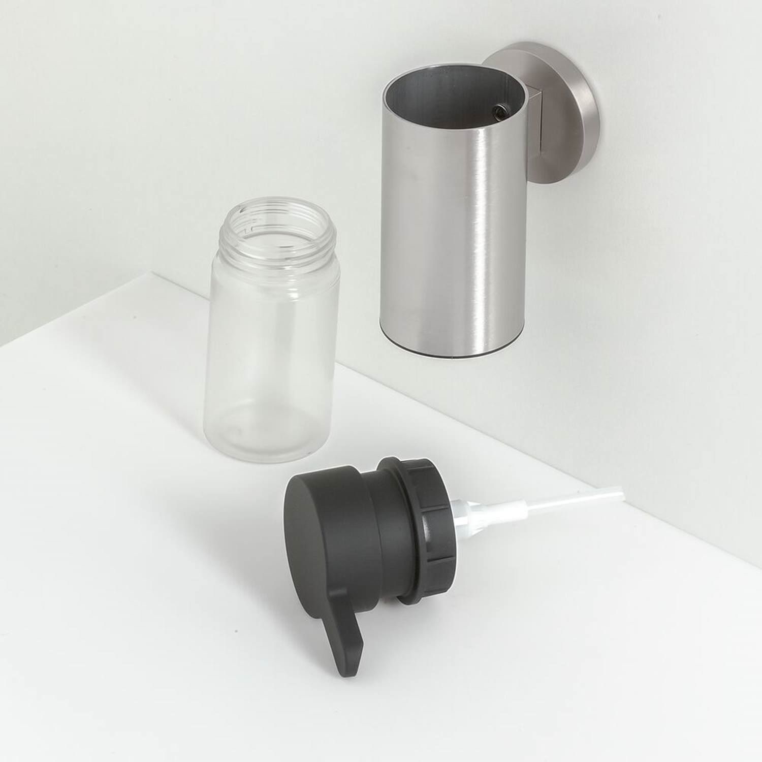 Het wandmodel is tevens beschikbaar in een grotere maat. Het kunststof reservoir heeft een inhoud van 90 ml, is eenvoudig uit de houder te halen om opnieuw te vullen. De bevestigingsmaterialen zijn inbegrepen en bestaat uit RVS schroeven en Fischer pluggen.