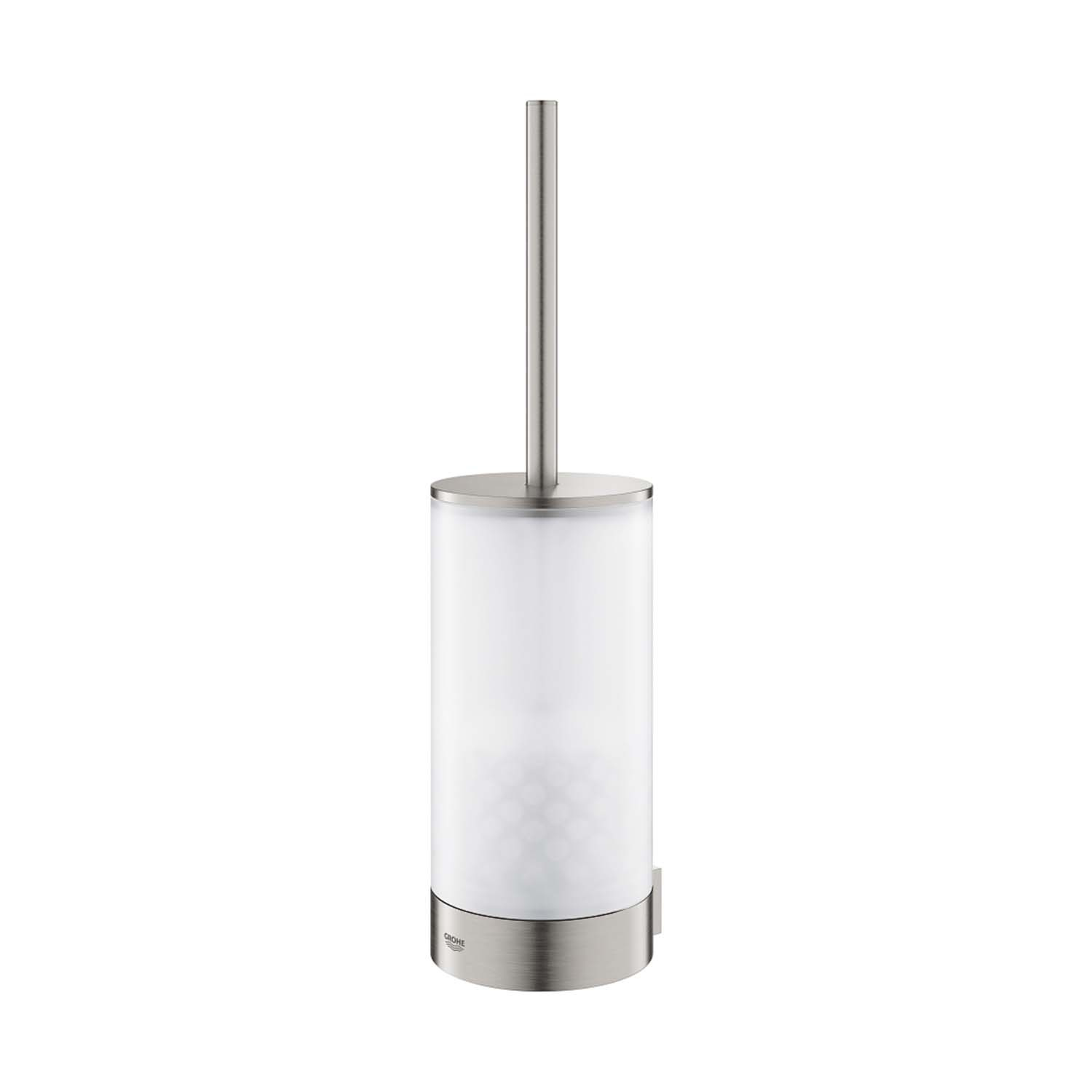 De toiletborstelset van de serie Selection van Grohe heeft een hoogte van 38.3 cm en een diameter van 10 cm. De toiletborstel bestaat uit een losse borstel met witte kop. Deze kop is van de steel af te draaien. Wel prettig dat dit op den duur vervangen kan worden. De steel rust in de houder die aan de muur bevestigd wordt. De houder is gemaakt van messing ideaal omdat het niet kan roesten of oxideren en dat is erg belangrijk in vochtige ruimtes. Ook heeft de serie meerdere accessoires zodat u uw badkamer kunt combineren met andere elementen uit de serie. Zo voorkomt u kleurverschil in uw accessoires.