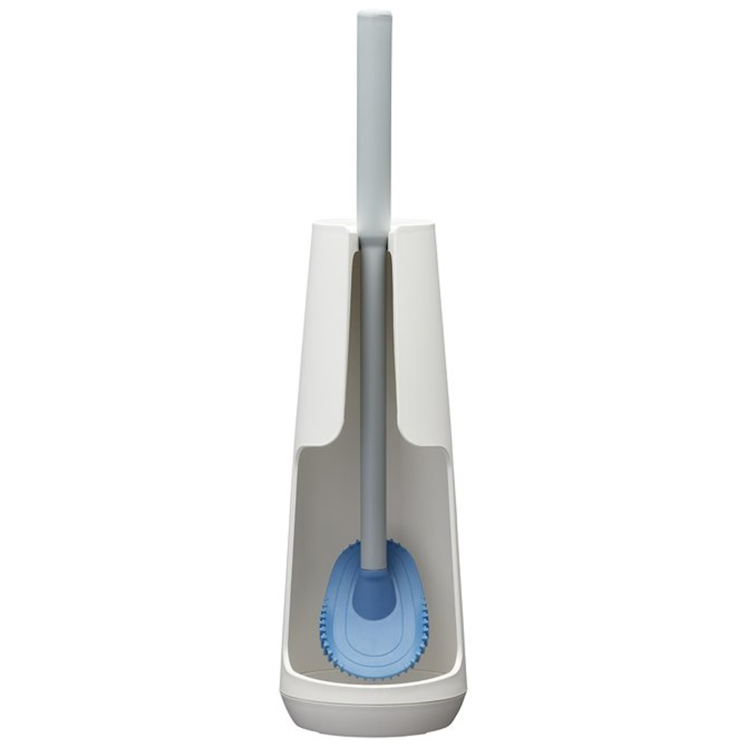 Reinig uw toilet met gemak met de toiletborstel en houder van Tiger. De toiletborstelhouder heeft een modern uiterlijk en kunt eenvoudig op de grond neerzetten. De Swoop toiletborstel heeft een innovatieve borstelkop waarmee u met gemak moeilijk bereikbare plekken kun bereiken, zelfs onder de rand. Dankzij de vorm en het synthetische materiaal blijft er geen viezigheid achter en druppelt de borstel nouwelijks na. Hierdoor laat het geen water achter in de houder. Bovendien blijft er geen vuil tussen de borstelharen zitten. Deze speciale toiletborstel heeft niet voor niets een onderscheiding ontvangen voor een Goed Industrieel Ontwerp.