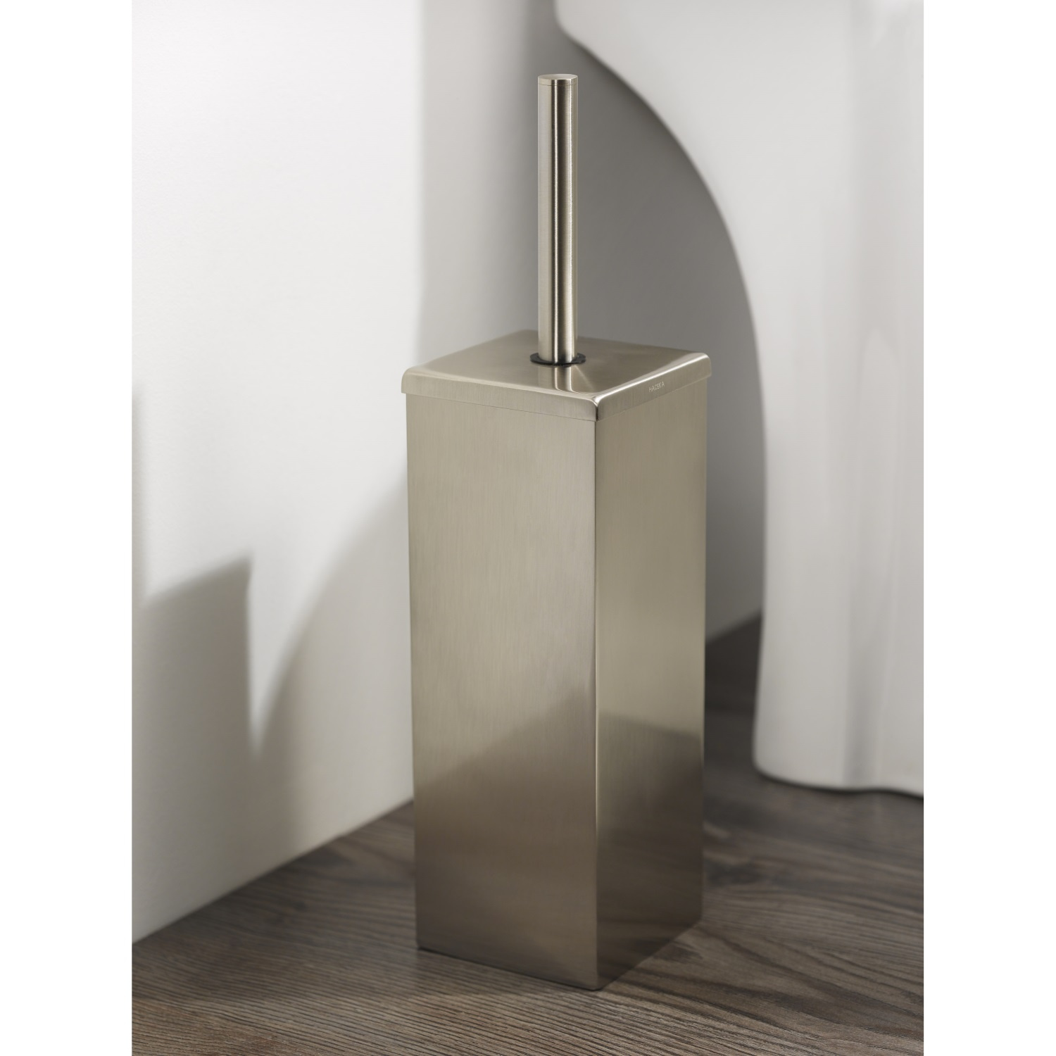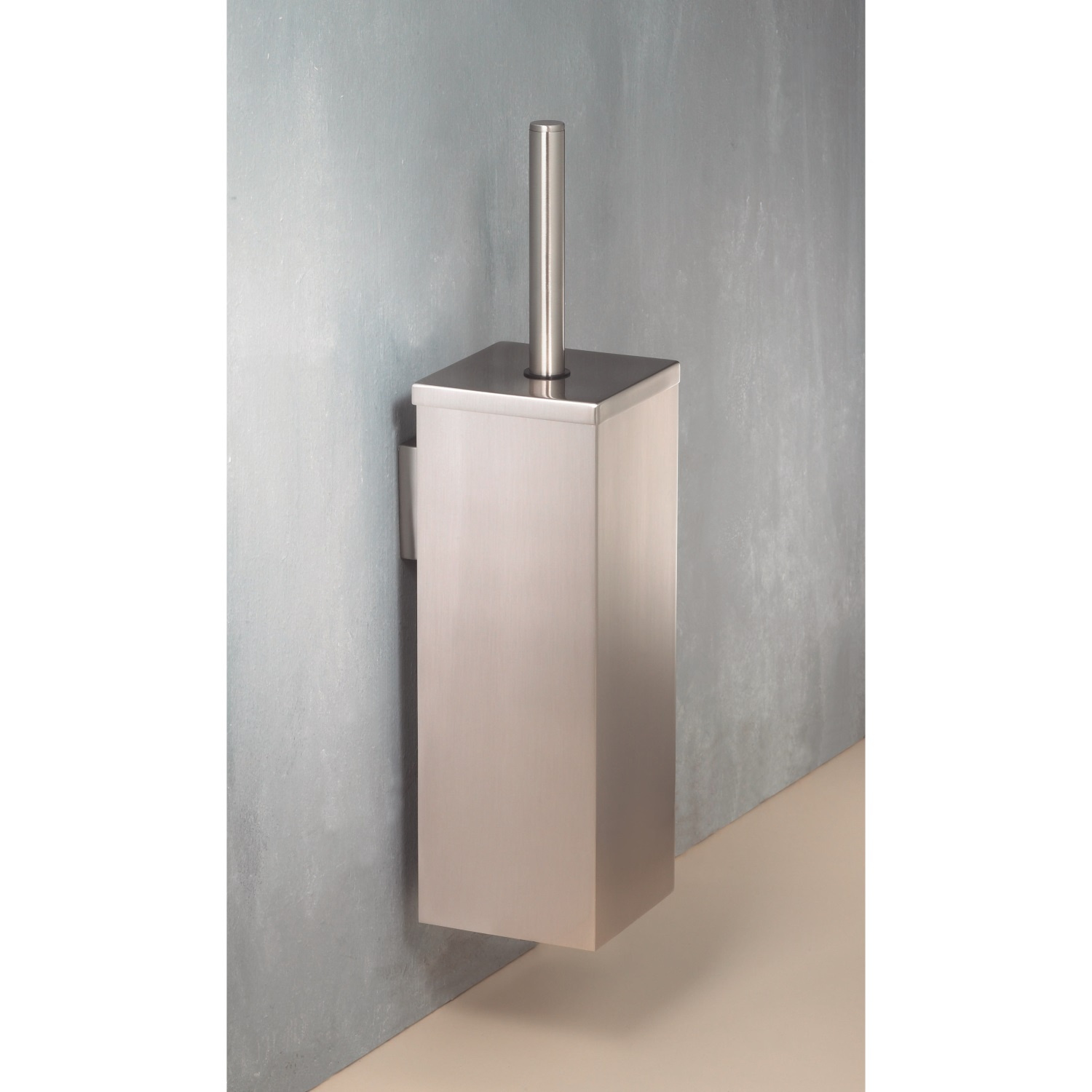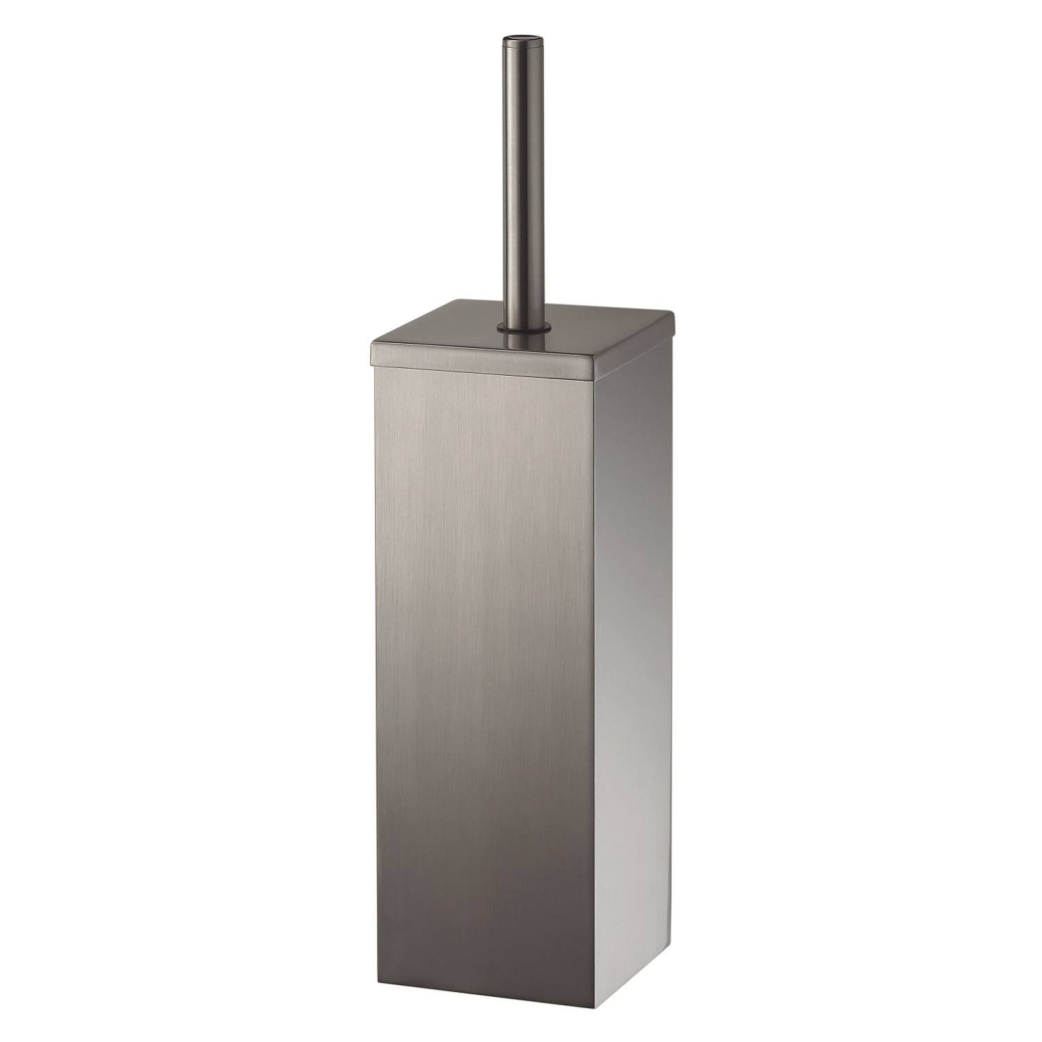 Vrijstaande, vierkante toiletborstelset in de kenmerkende Mezzo-stijl. Geeft uw toiletruimte extra stijl. De set is aan de wand te monteren, maar u kunt hem ook op de grond zetten. Om het schoonmaken makkelijk te maken, heeft de set een binnenpot.