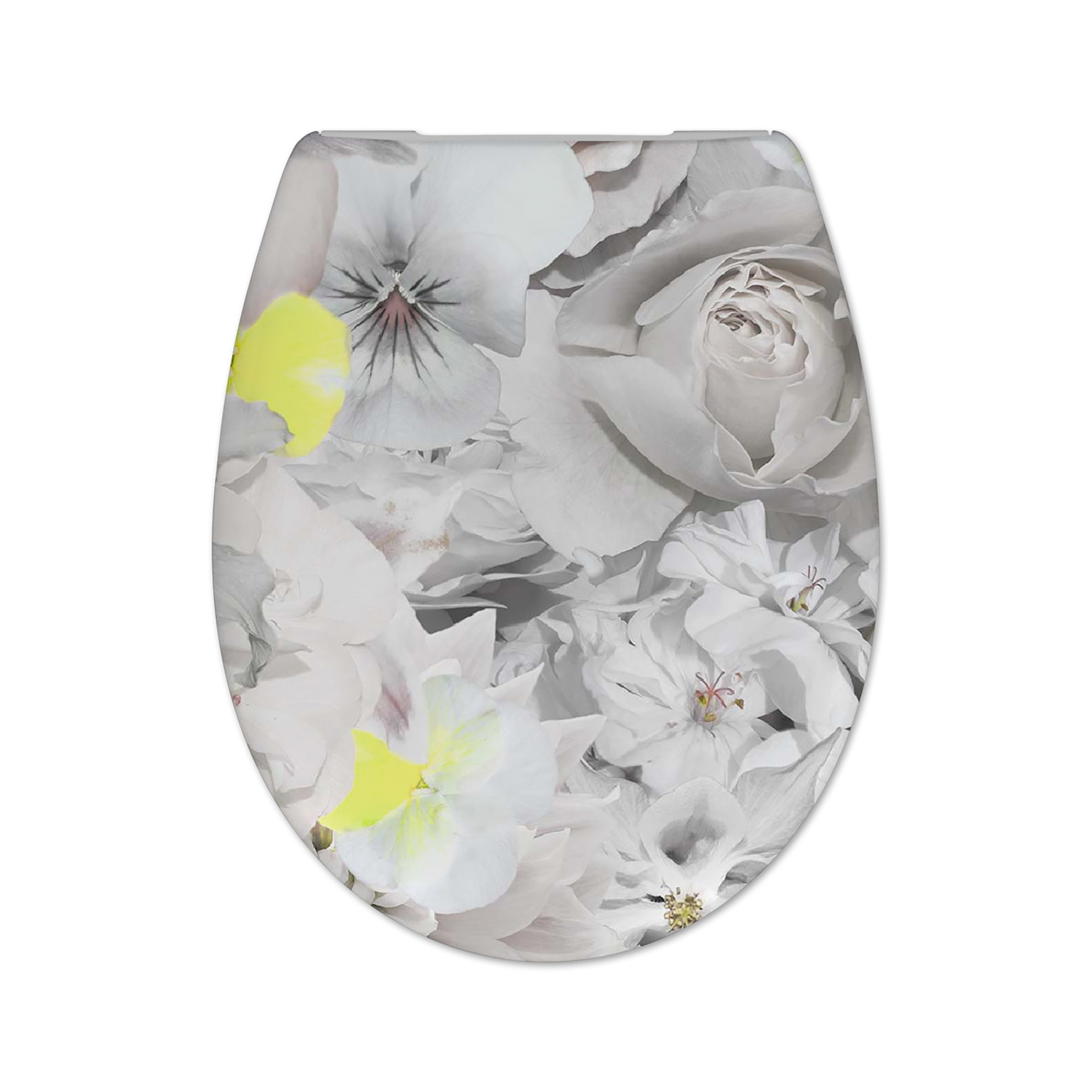 Deze toiletzitting is een echte eyecatcher door zijn bloemenprint in zwart/wit met gele accenten. De toiletbril is gemaakt van duroplast. Dat is een krasvast materiaal, wat lang meegaat en makkelijk schoon te maken is. Omdat duroplast geen poriën heeft, hecht er geen vuil aan.