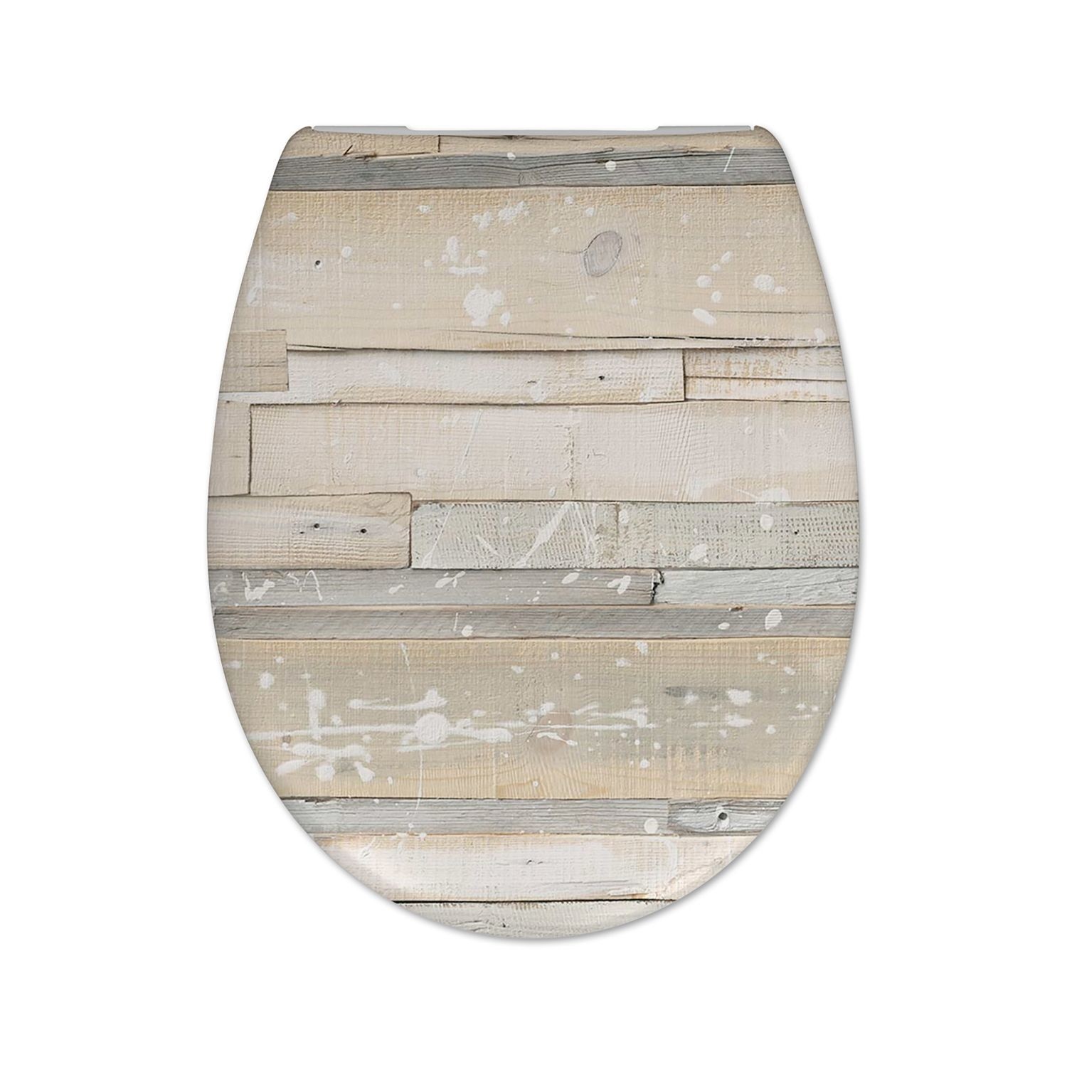Deze toiletzitting heeft een houtlook in grijs- en bruintinten. De toiletbril is gemaakt van duroplast. Dat is een krasvast materiaal, wat lang meegaat en makkelijk schoon te maken is. Omdat duroplast geen poriën heeft, hecht er geen vuil aan.