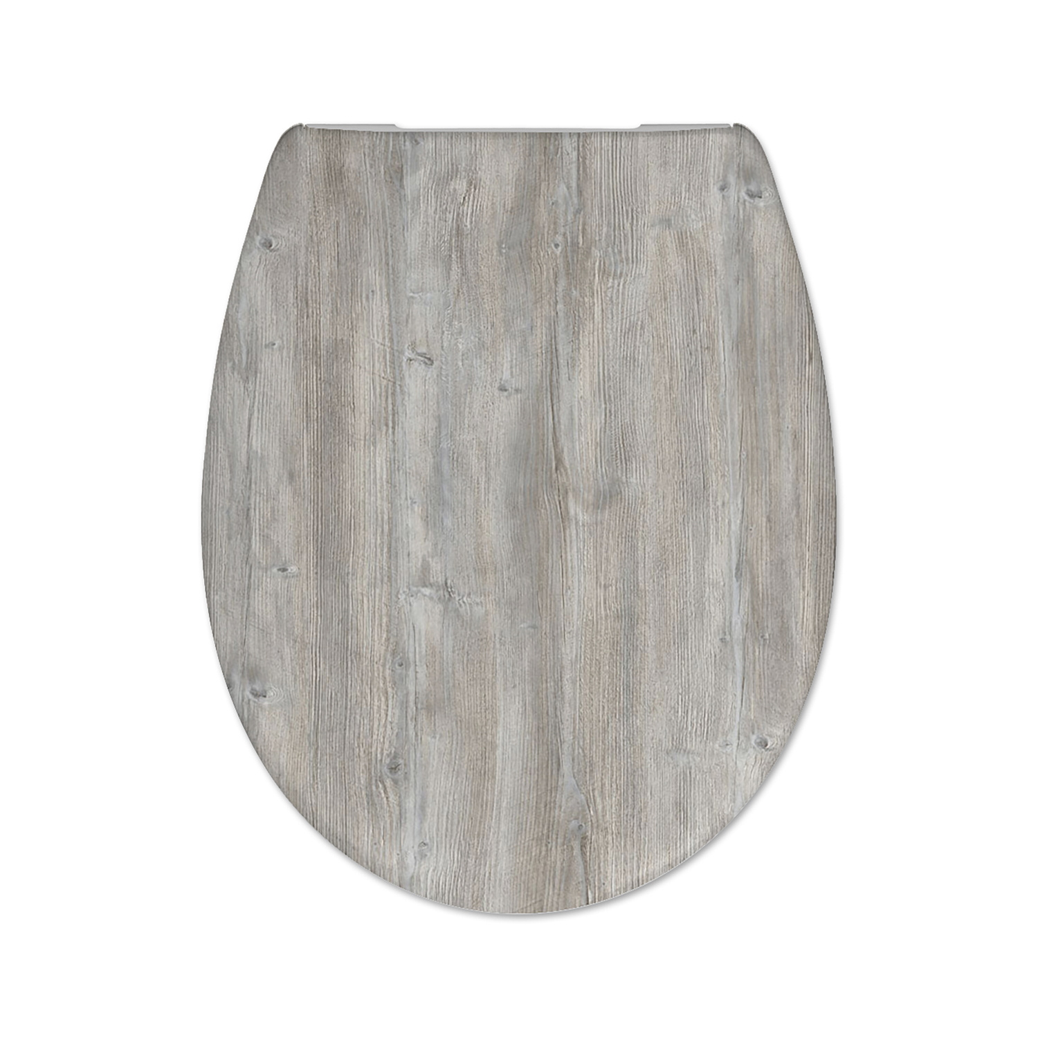 Deze toiletzitting heeft een houtlook in grijstinten. De toiletbril is gemaakt van duroplast. Dat is een krasvast materiaal, wat lang meegaat en makkelijk schoon te maken is. Omdat duroplast geen poriën heeft, hecht er geen vuil aan.