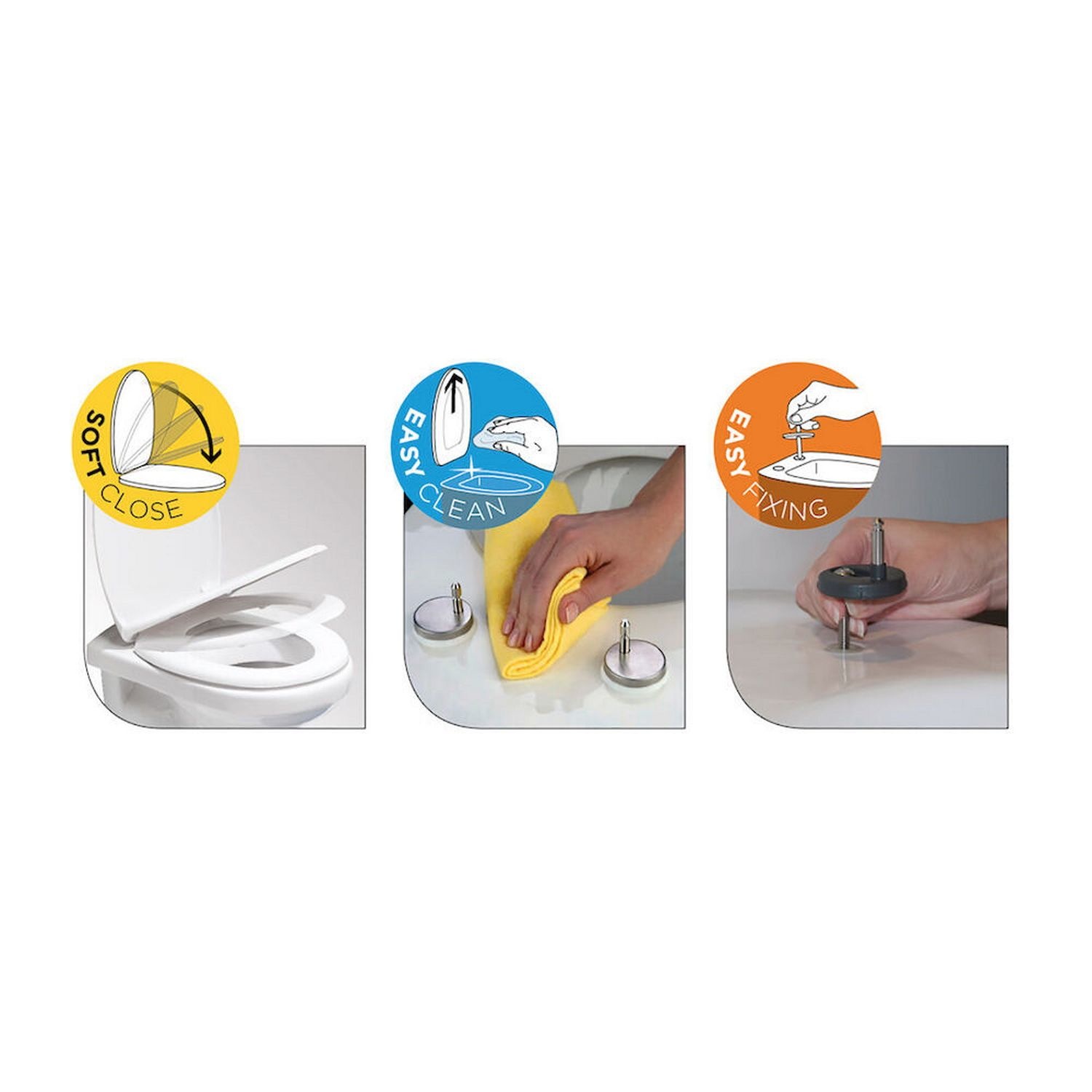 Deze toiletbril is voorzien van softclose. Dit zorgt ervoor dat de deksel en zitting zacht en geruisloos dichtvallen en daardoor ook niet beschadigen. De zitting is afneembaar en zo ook gemakkelijk schoon te houden.