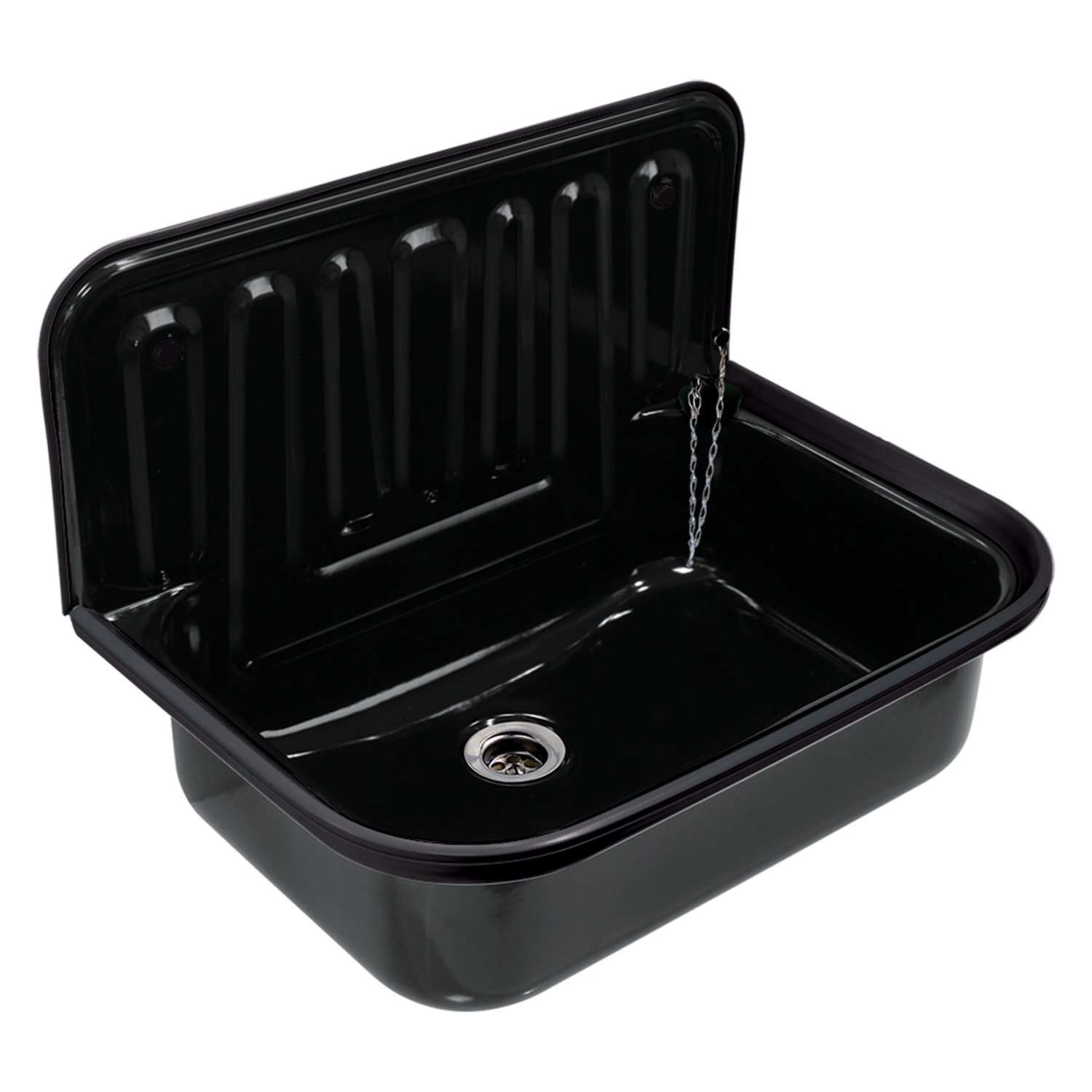 De uitstortgootsteen met een breedte van 50cm is gemaakt van plaatstaal en een aanwinst voor in de garage of bijkeuken. De gootsteen wordt geleverd zonder kraan, sifon en emmerrooster.