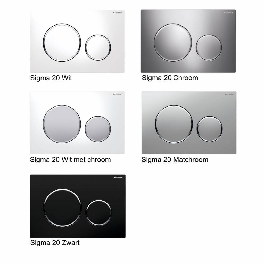 De Sigma drukplaten hebben verschillende series met allemaal hun eigen specialiteit. In de set zit een variatie van de Sigma 01, 20 en 30 drukplaten waar u uit kunt kiezen. De drukplaten zijn voorzien van 2 knoppen die speciaal ontwikkeld zijn voor een grote of kleine spoeling waarmee u veel water kunt besparen. De grote knop verbruikt tussen de 4,5 en 6 liter water per spoeling. De kleine knop tussen de 3 tot 4 liter. U kunt dit handmatig bijstellen zodat u optimaal water kunt besparen.