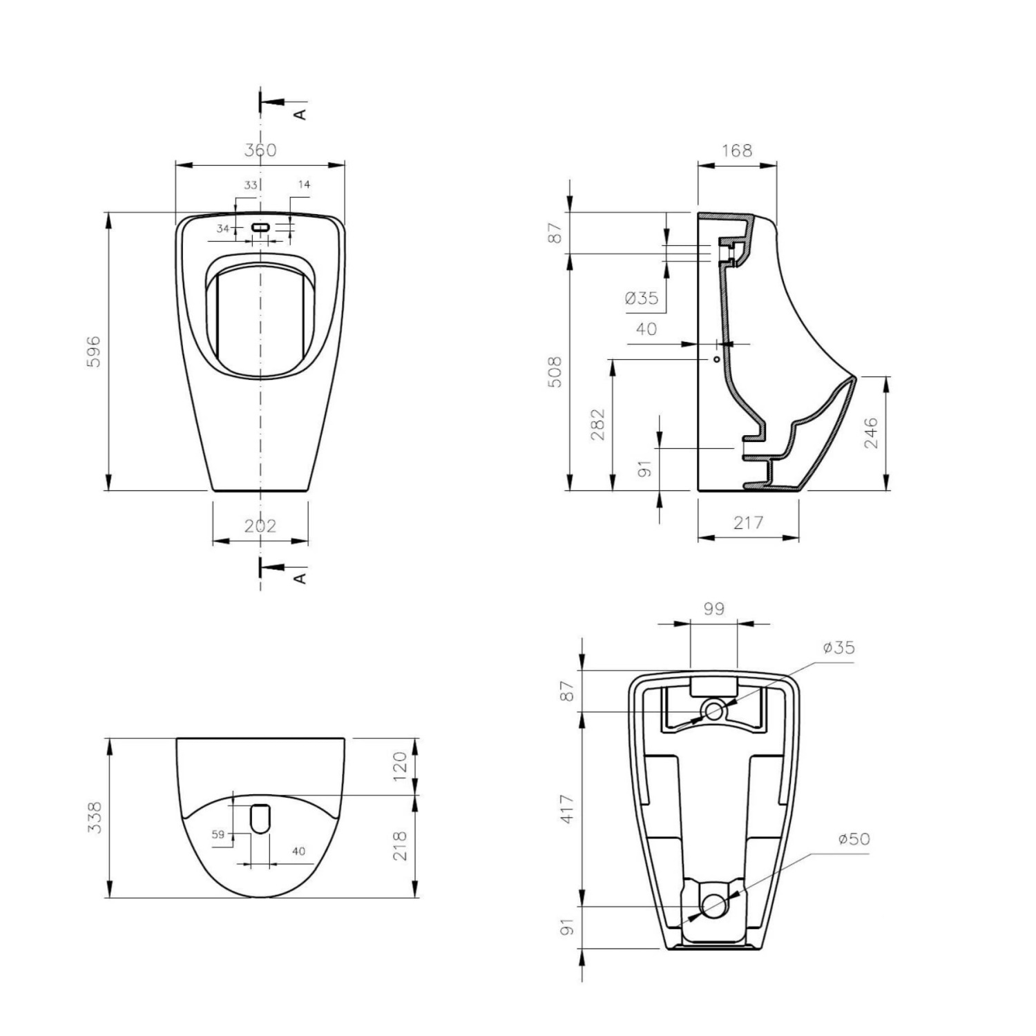 Dit urinoir heeft een spoelwateraansluiting achter. Dit zorgt ervoor dat het mogelijk is om een bedieningspaneel op het inbouwreservoir te plaatsen, waardoor het geheel op een heel nette manier weg te werken valt.