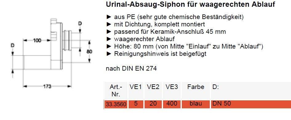 Urinoir-sifon afvoer horizontaal