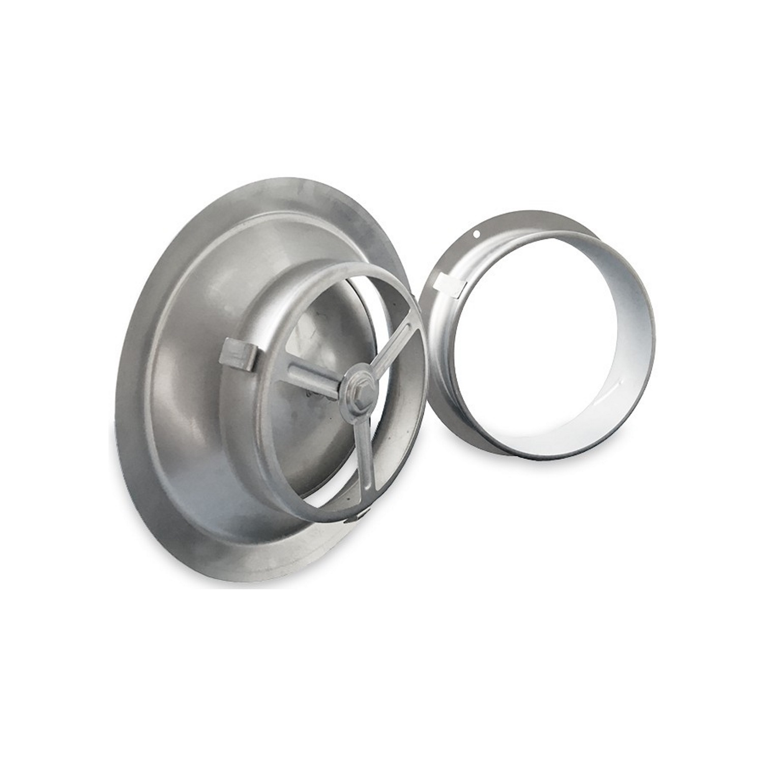 Dit toeen afvoerrooster is een rond model met een geborstelde RVS afwerking. Het bevat stalen klemveren, een aansluitbuis en een flexibele slang met een diameter van 150mm. De conus is instelbaar, zodat de toeen afvoer van de hoeveelheid lucht geregeld kan worden. De conus kan met een borgmoer vastgezet worden.