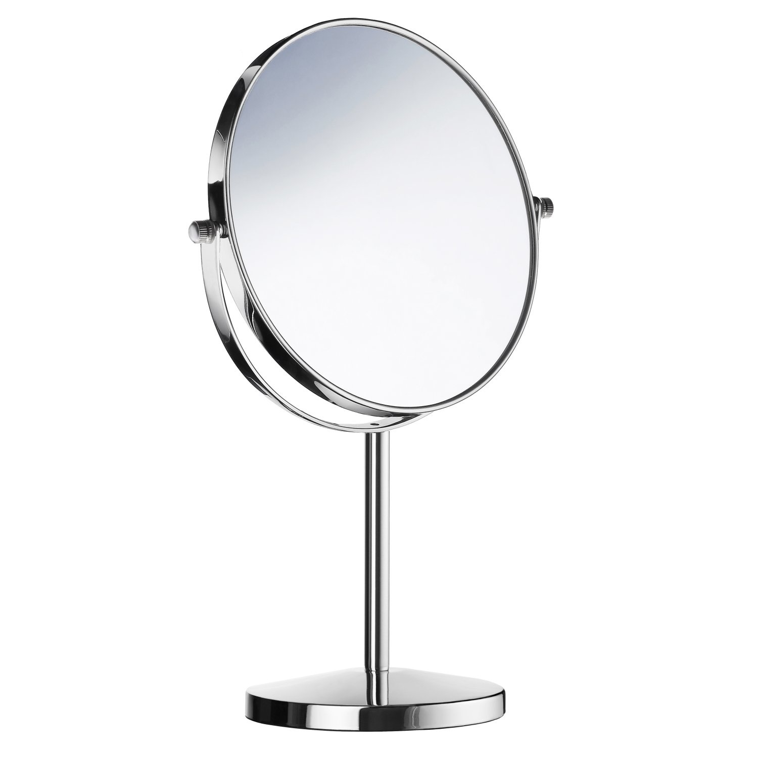 Deze vrijstaande vergrotingsspiegel is niet alleen mooi, maar ook handig. Aan twee zijden is er een spiegel. Zowel een normale als één die 7x vergroot. De spiegel is 35 cm hoog en heeft een diameter van 17 cm.