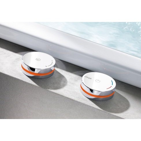 De Viega Trio E kan u gemakkelijk combineren met een badvul overloopcombinatie van Viega en zo de temperatuur instellen.