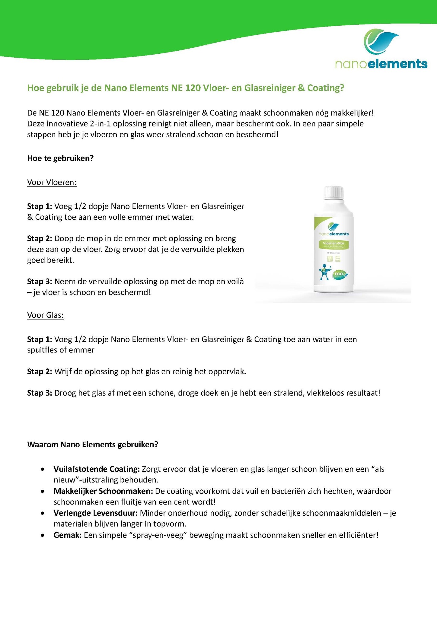 De Nano Elements vloer- en glasreiniger & coating is een innovatieve 2-in-1 oplossing die zowel reinigt als beschermt. Dit reinigingsconcentraat is speciaal ontwikkeld om in één behandeling te reinigen en een onzichtbare beschermlaag achter te laten op vloeren en glas, waardoor oppervlakken niet alleen grondig gereinigd worden, maar ook een langdurige, ‘’als nieuw’’ uitstraling behouden. Het product is volledig bio-based en bevatten geen schadelijke stoffen zoals PFAS of PFOS, waardoor ze veilig zijn voor zowel de gebruiker, materiaal als het milieu.