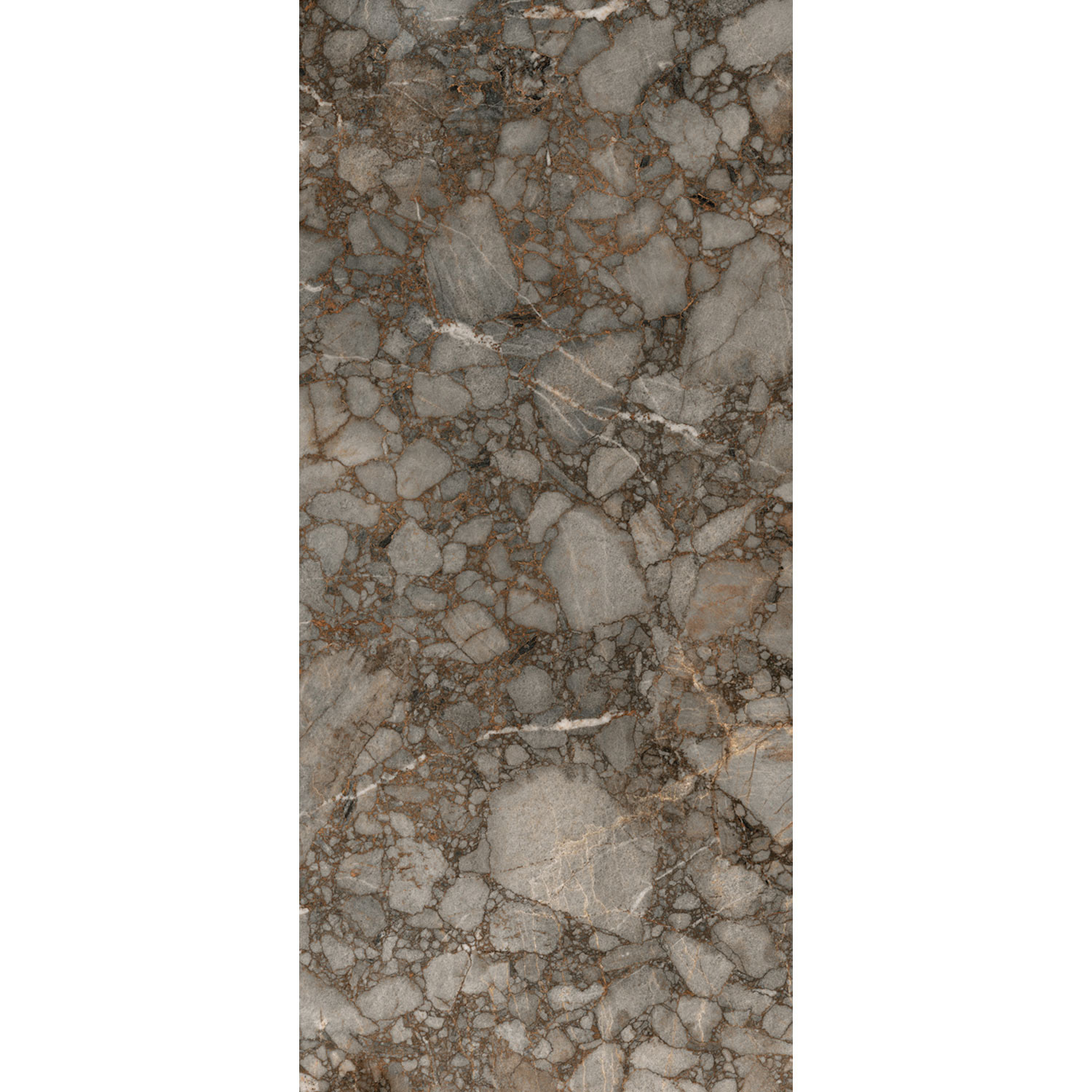 Deze XL Vloertegel komt uit de serie Magnum en is van het merk Douglas & Jones. De tegel heeft een XL afmeting van 120cm breed met een hoogte van 280cm. De tegel heeft een dikte van maar liefst 6mm en wordt gebruikt als vloertegel. Deze afmeting tegel wordt ook wel "slab" genoemd. De tegel heeft een bruine kleur met een glanzende afwerking. De fabrikantkleur heeft de naam "Riverbed" en dit is een marmerlook tegel.