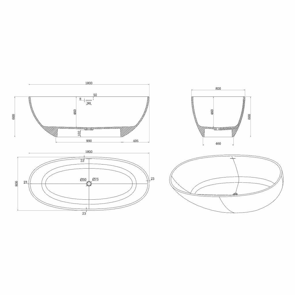 Het vrijstaande bad is gemaakt van Solid Surface. Solid Surface is een duurzaam oppervlaktemateriaal. Dat komt door de voordelen van de twee hoofdmaterialen aluminiumhydroxide en acryl die samen zijn gevoegd. De combinatie maakt uw bad vocht en vlekbestendig, weert bacteriën, laat zich bewerken als hout en toont keer op keer een oppervlakte als nieuw. Het is ook nog eens milieu vriendelijk en biologisch verantwoord.