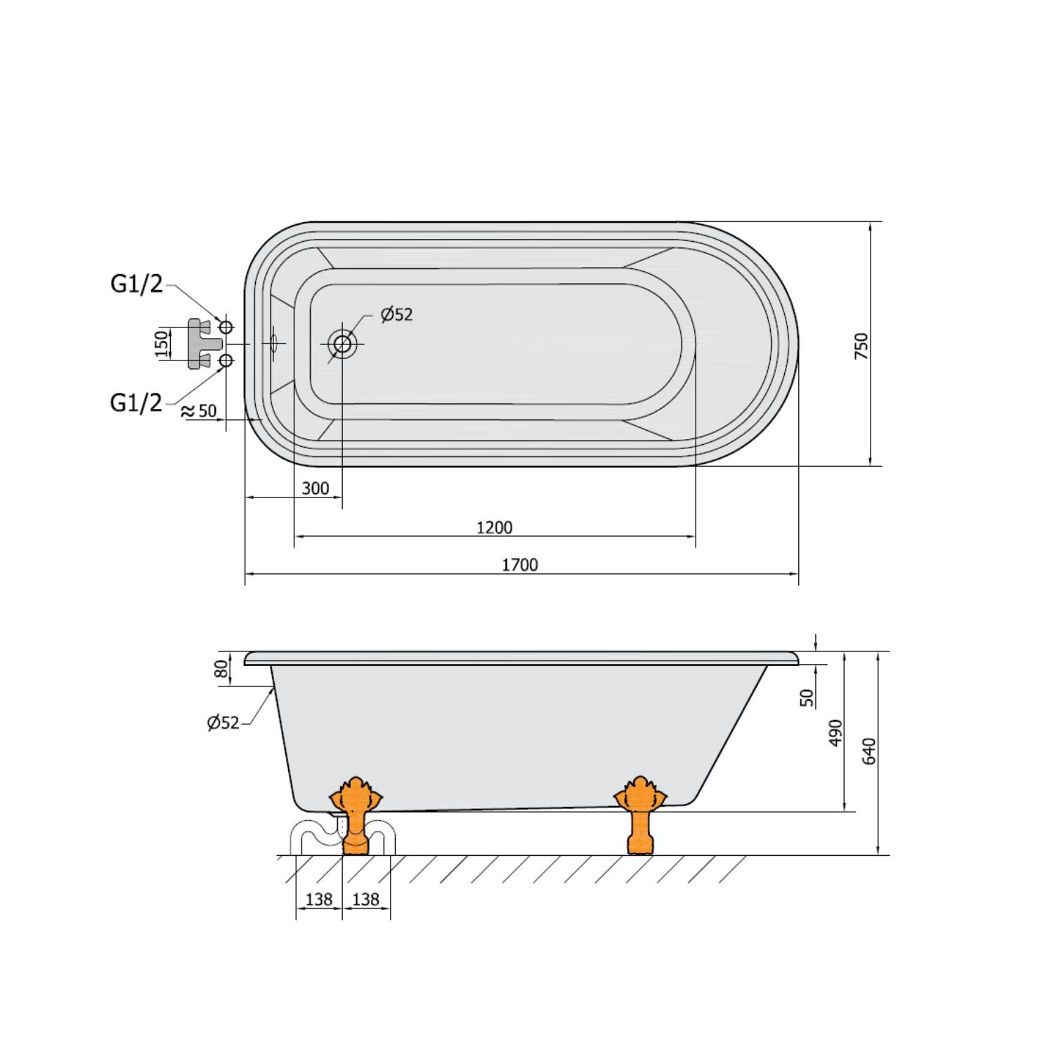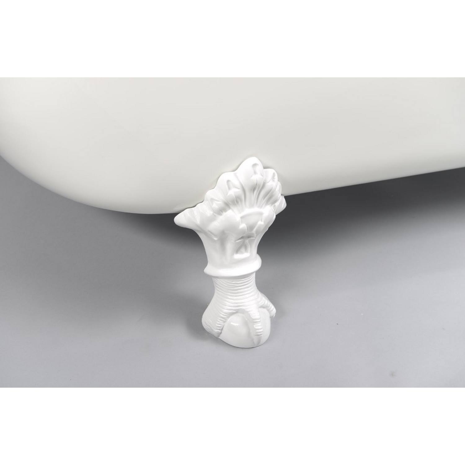De witte poten maken dit vrijstaande bad echt af. Badpoten hoeft u er dus niet meer bij te bestellen. U heeft nog wel een afvoerplug nodig en een badafvoer.