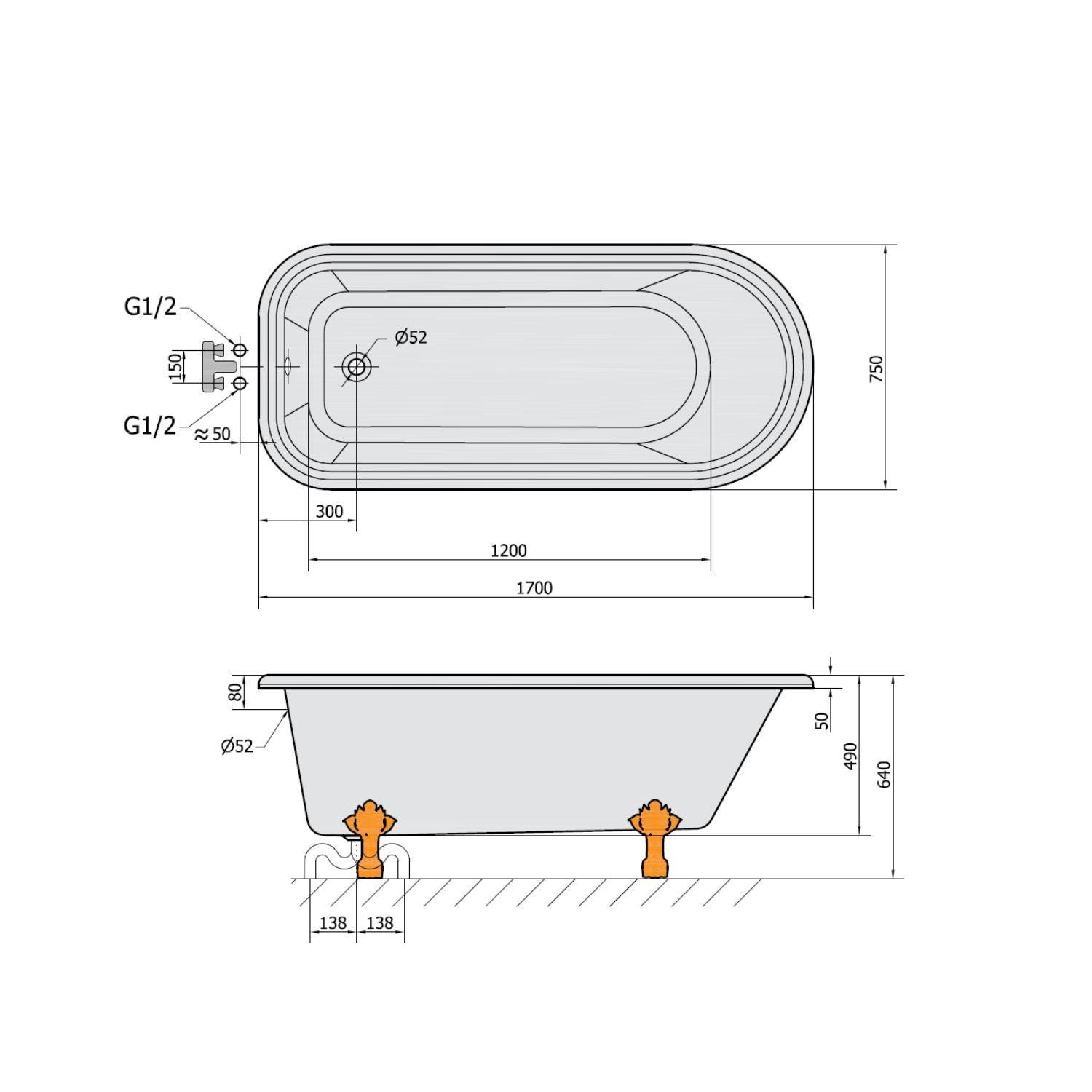 De witte poten maken dit vrijstaande bad echt af. Badpoten hoeft u er dus niet meer bij te bestellen. U heeft nog wel een afvoerplug nodig en een badafvoer.