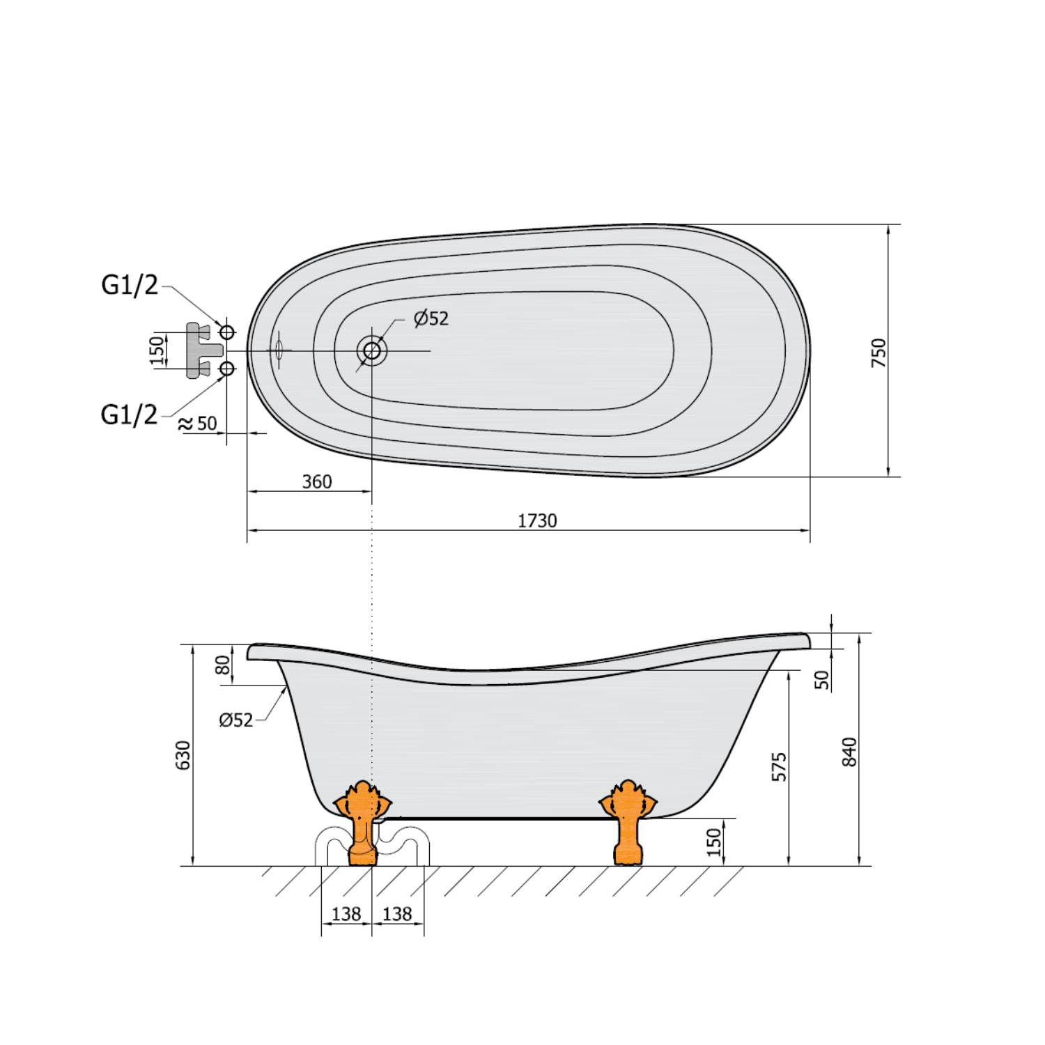 De witte poten maken dit vrijstaande bad echt af. Badpoten hoeft u er dus niet meer bij te bestellen. U heeft nog wel een afvoerplug nodig en een badafvoer.