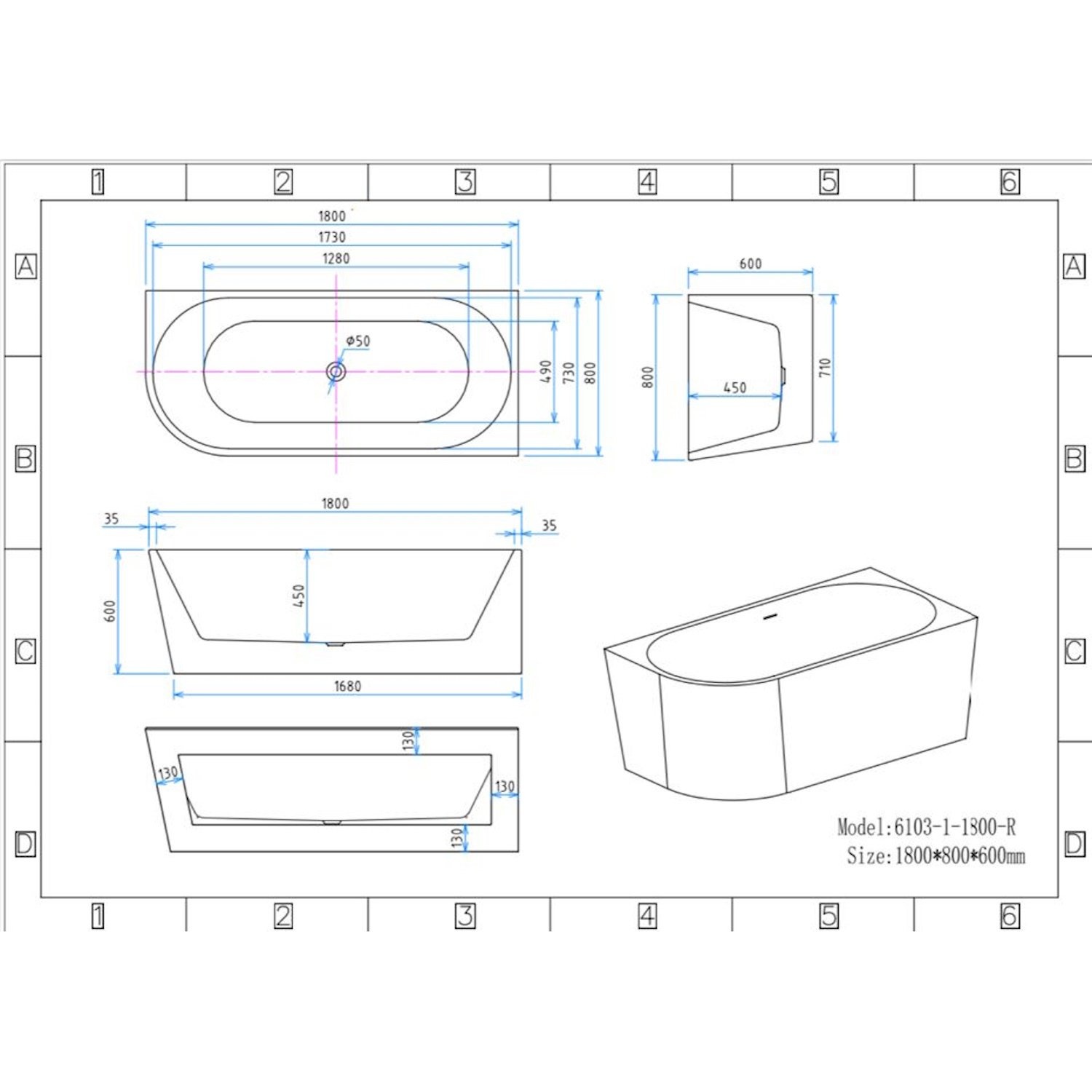 Dit half vrijstaande ligbad heeft een afwerking in een hoogglans witte kleur. Het bad heeft een lengte van 180 cm, een breedte van 80 cm en een hoogte van 59 cm, waardoor dit ligbad meer dan genoeg ruimte voor optimale ontspanning biedt.