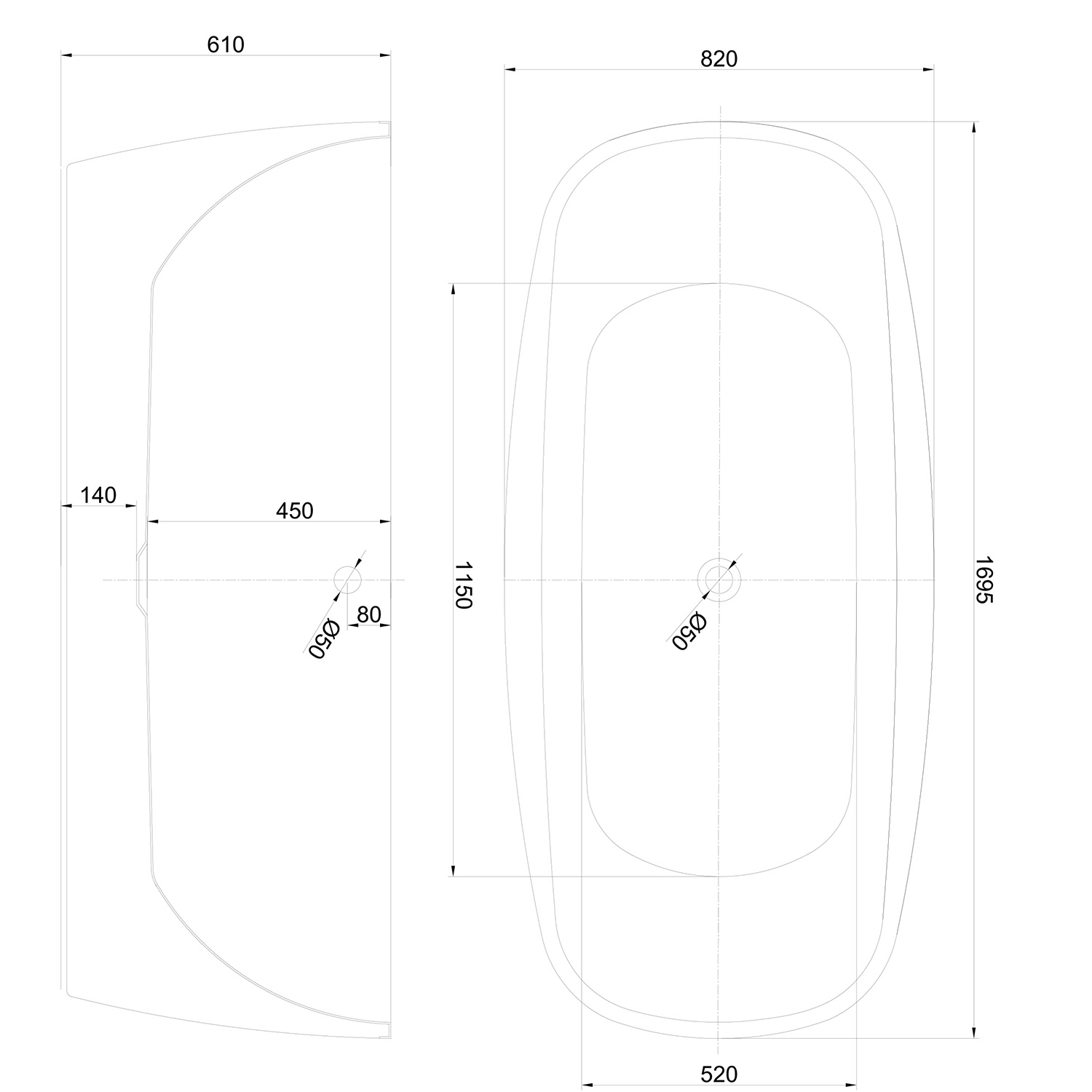 Dit vrijstaande bad is van het merk Boss & Wessing en komt uit de serie Eloise. Het bad heeft een afmeting van 170 cm lengte met een breedte van 80 cm en een diepte van 57 cm. Het bad heeft een afvoergat met een diameter van 5 cm. De bodemmaat van dit bad is 115 cm. Het bad is gemaakt van Acryl met een witte kleur. Daarnaast heeft de witte kleur een hoogglans afwerking gekregen. De ovale vorm zorgt voor een speels effect in de badkamer. Dit bad wordt geleverd met afvoer die geplaatst wordt in het midden van het bad.