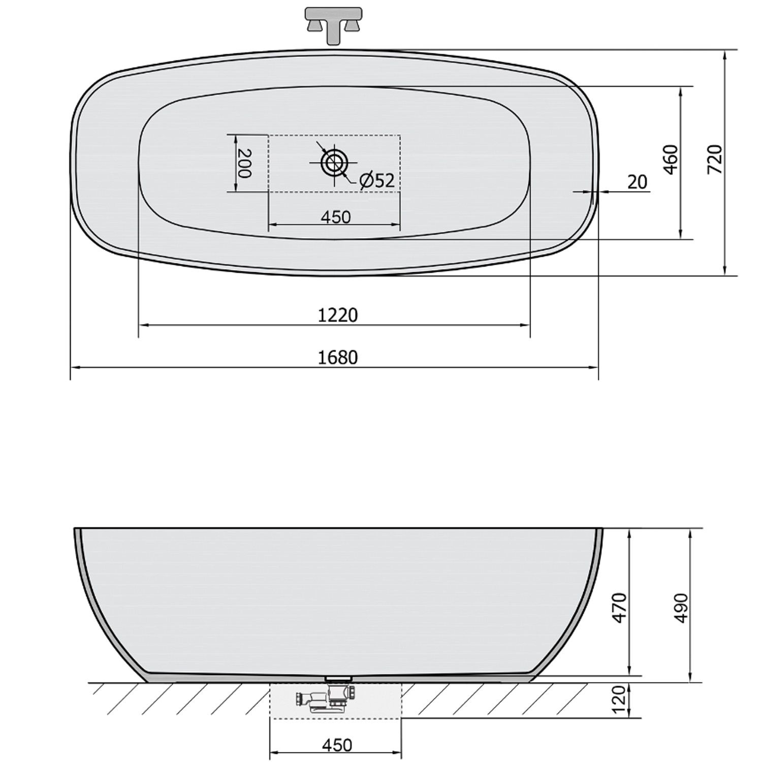 Het bad heeft een lengte van 168 cm, een breedte van 72 cm en een hoogte van 49 cm. Het bad beschikt niet over een overloop opening. Het bad wordt geleverd exclusief waste en sifon, deze dient u los te bestellen. Verder is het van belang dat het sifon in de vloer verzonken dient te worden bij installatie.