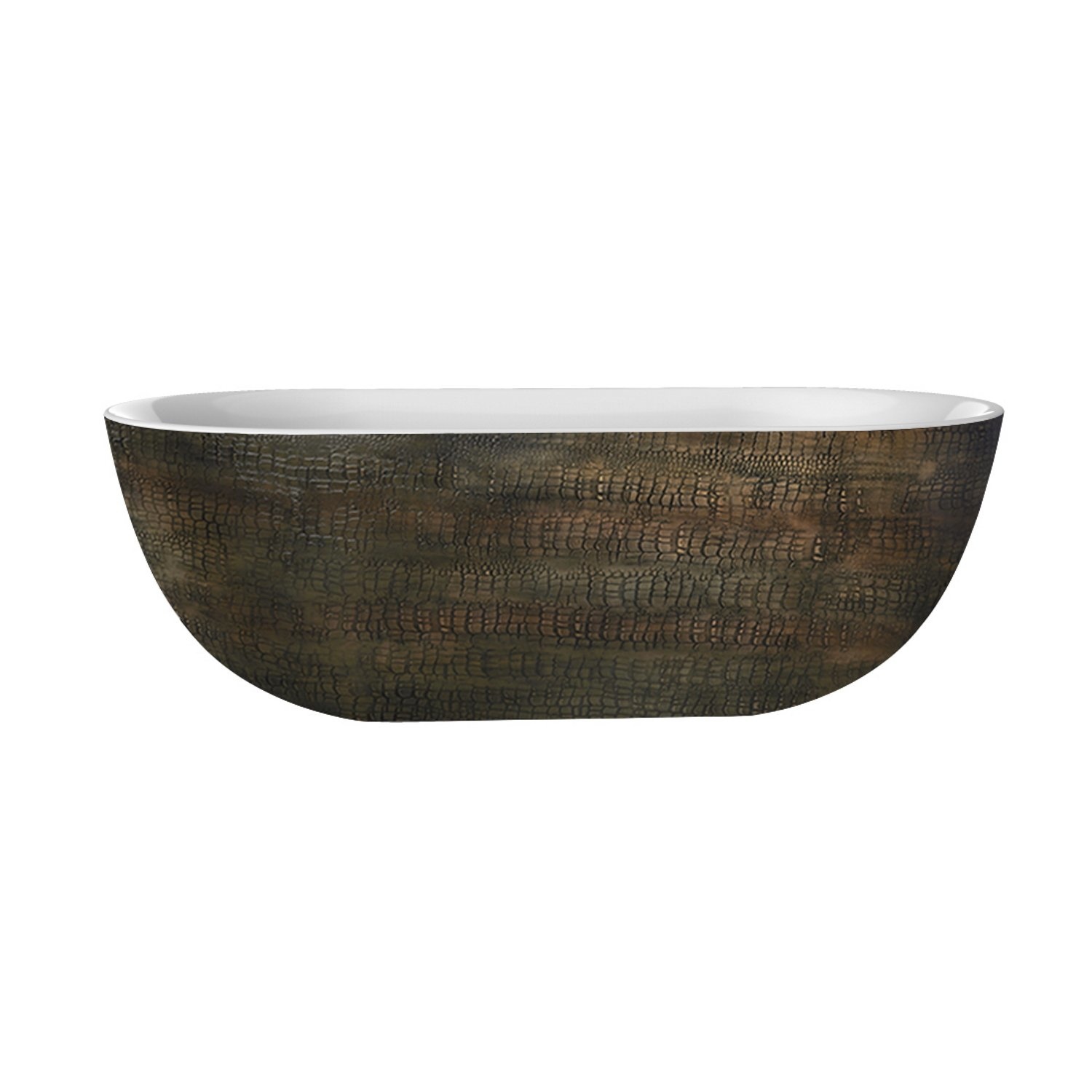 Het bad is te plaatsen met een staande badkraan om zo een totaal vrijstaande badplaats te creëren. Dit bad vergeelt niet door het hoogwaardig acryl en bestaat uit een geheel en heeft dus geen naden. U heeft voldoende ruimte om heerlijk comfortabel te baden. Ook is dit bad extra uniek door zijn bruine slangenprint! Aan de binnenzijde heeft het bad een glanzend witte kleur.