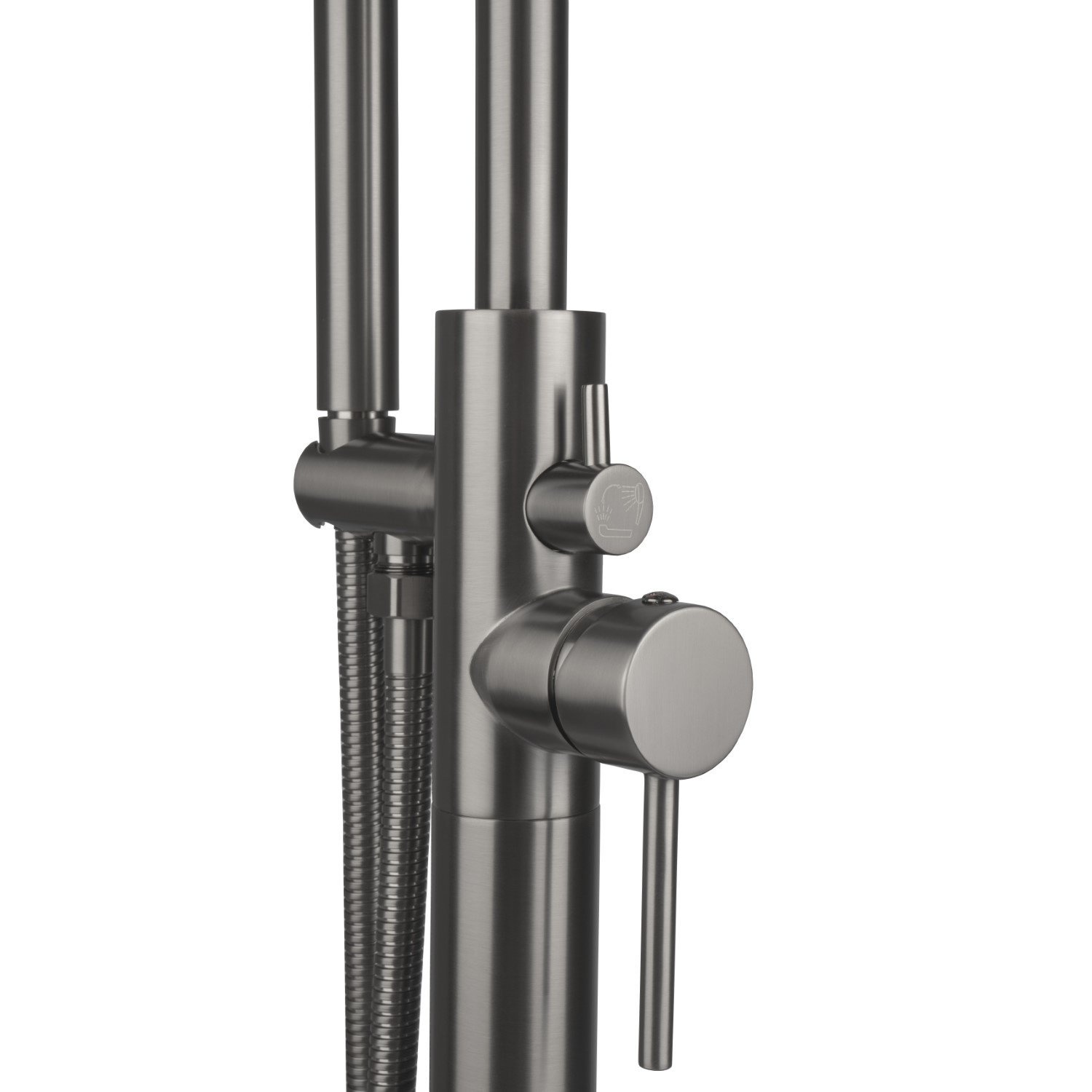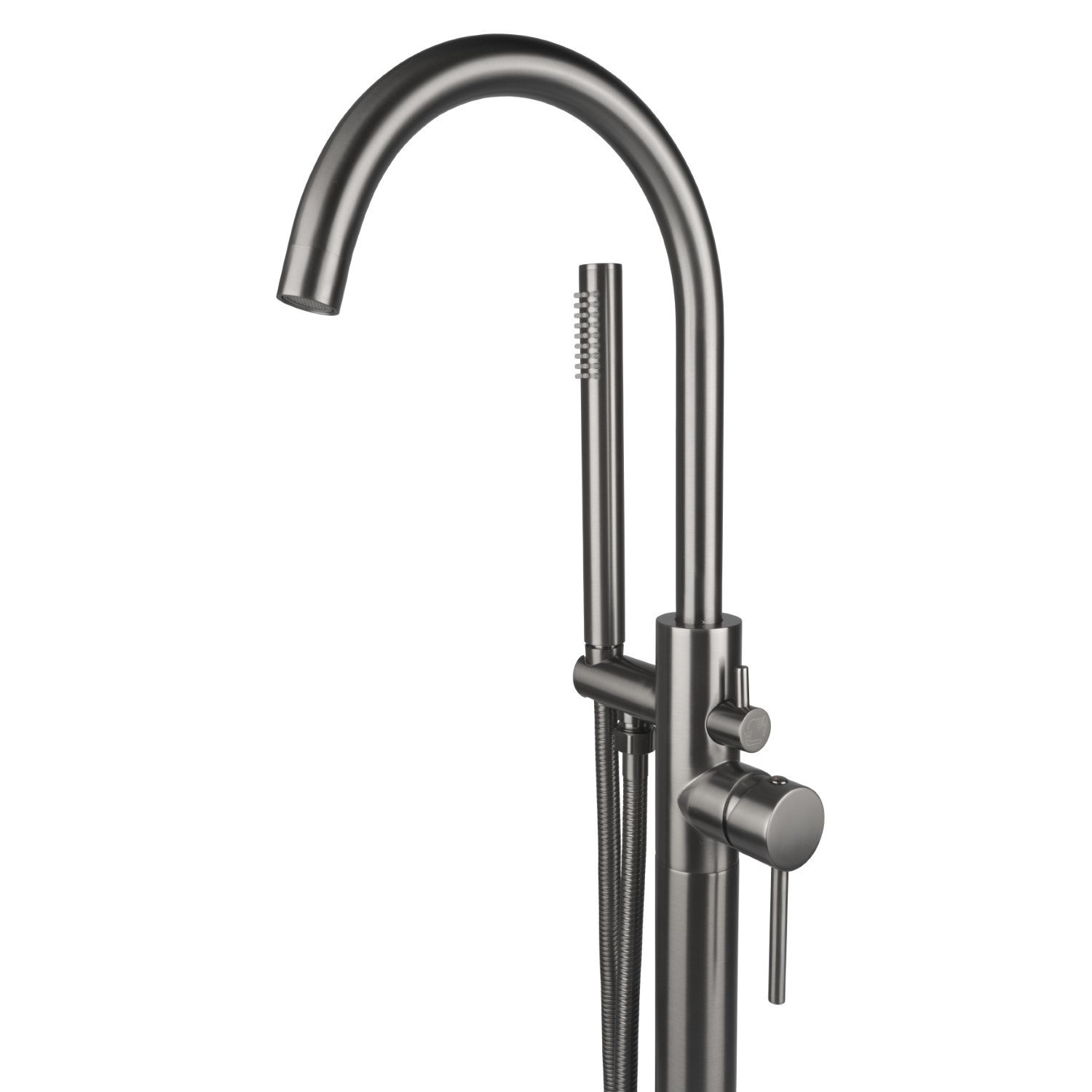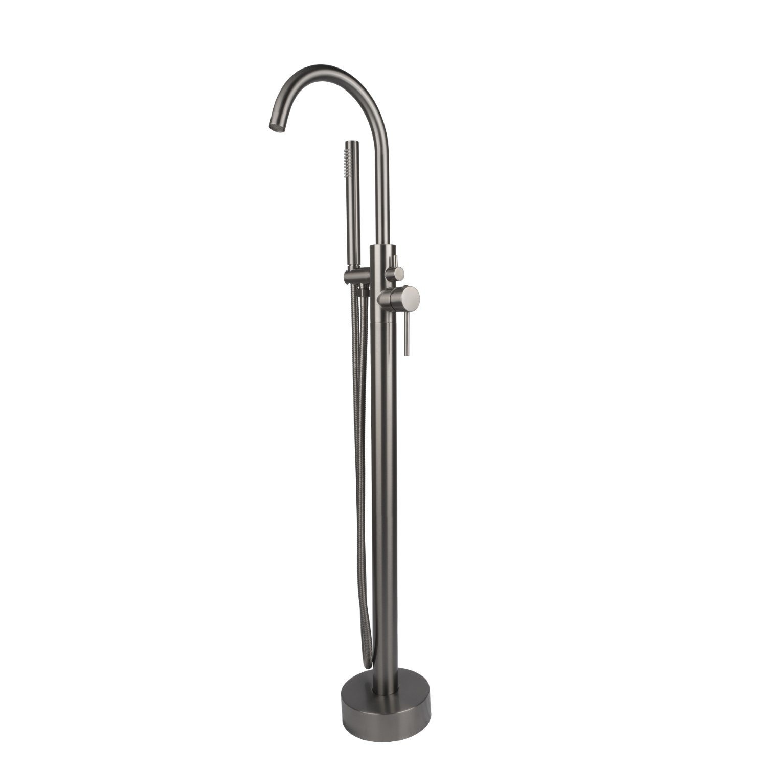 Met de 'Colorato' vrijstaande badkraan van het merk Aqua Splash haalt u een bijzondere kraan in huis. De kraan is gemaakt van messing en heeft een afwerking in de kleur gunmetal. De vrijstaande badkraan is uitgerust met een handdoucheset die bestaat uit een doucheslang en een staaf handdouche. De vrijstaande badkraan kan uitstekend gecombineerd worden met een (vrijstaand) ligbad.