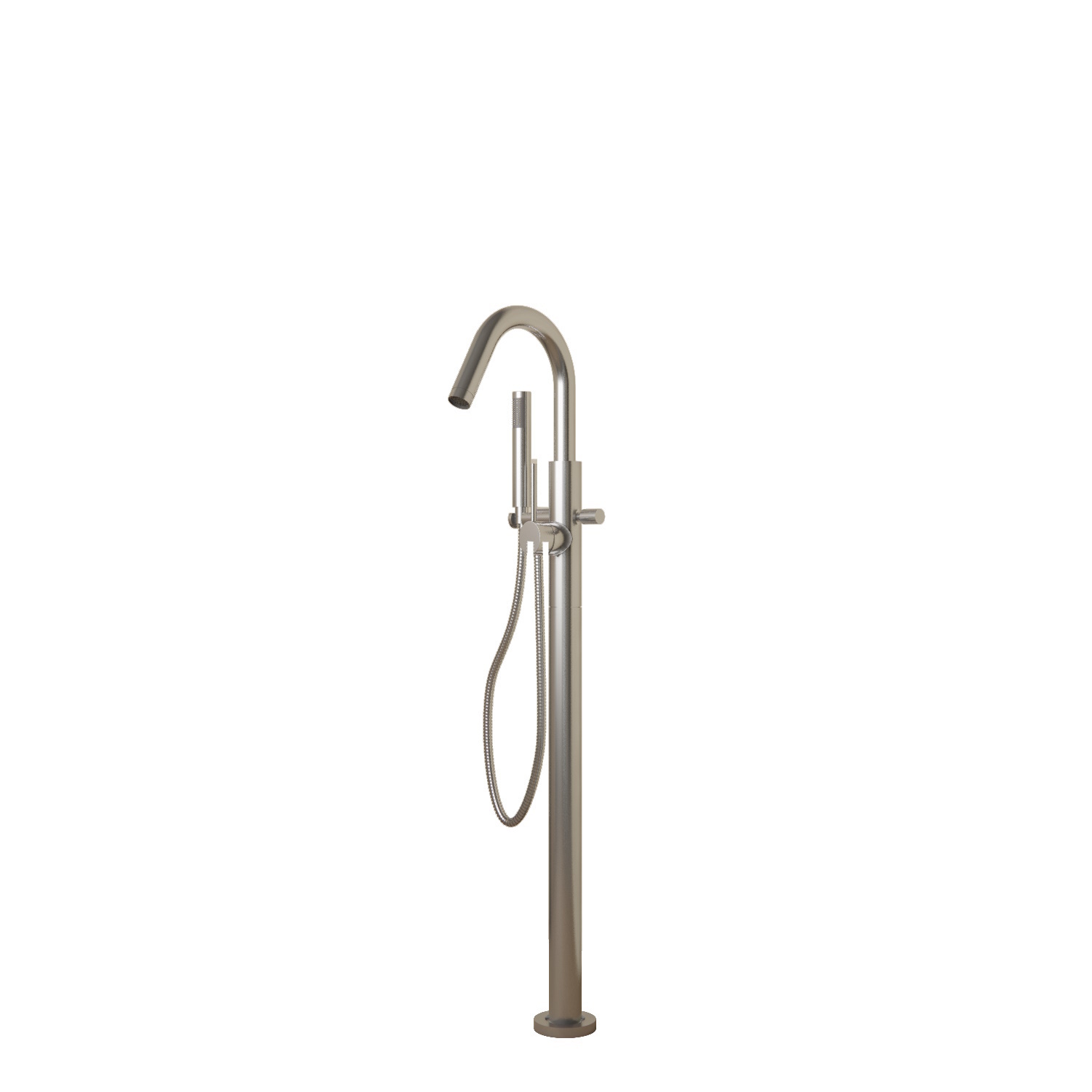 Deze vrijstaande badkraan staat garant voor kwaliteit en design. Het betreft een complete set bestaande uit een badkraan, een handdouche en een doucheslang. Alle elementen van deze set zijn afgewerkt in de kleur glanzend chroom, wat een luxe uitstraling aan uw badkamer geeft.