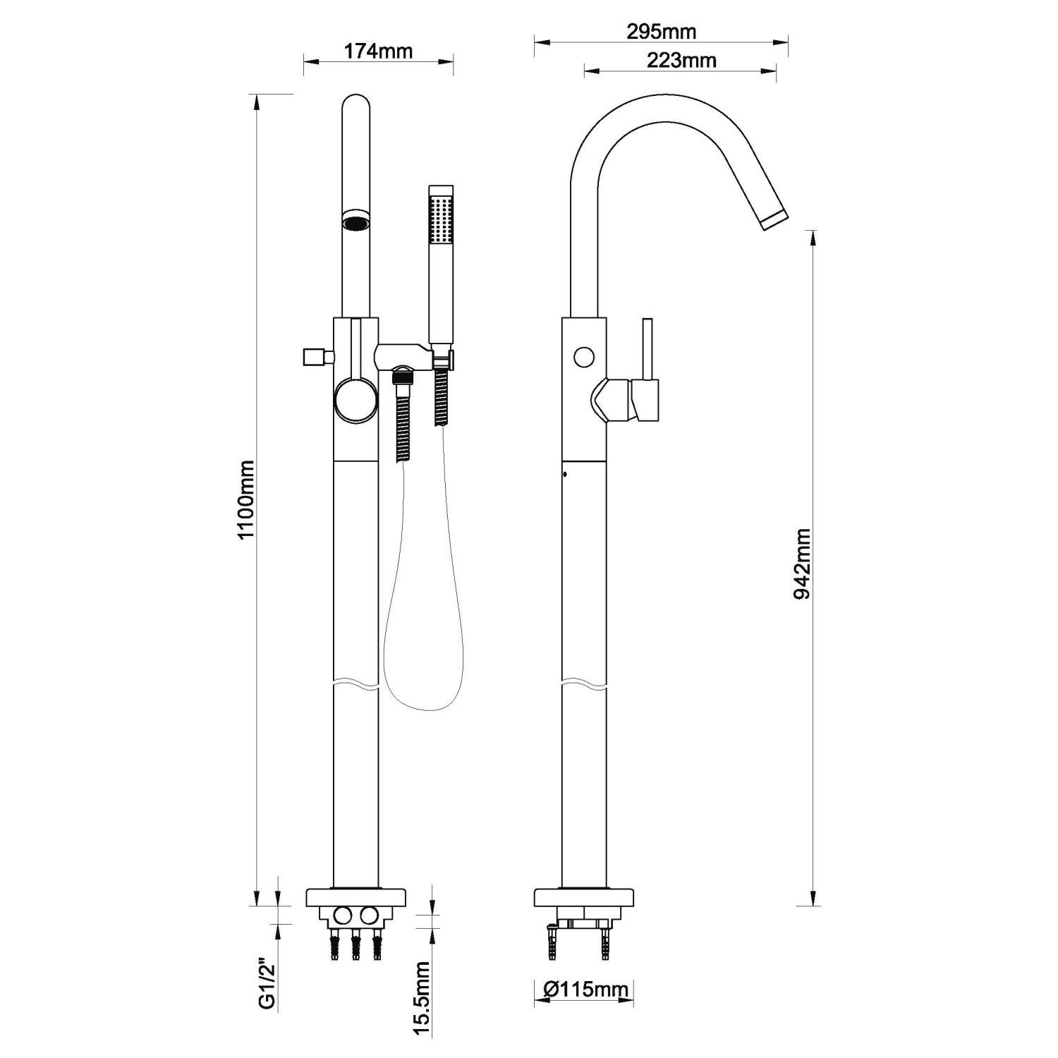Deze vrijstaande badmengkraan staat garant voor kwaliteit en design. Het betreft een complete set bestaande uit een badkraan, een handdouche en een doucheslang. Alle elementen van deze set zijn afgewerkt in de kleur geborsteld messing, wat een luxe uitstraling aan uw badkamer geeft.