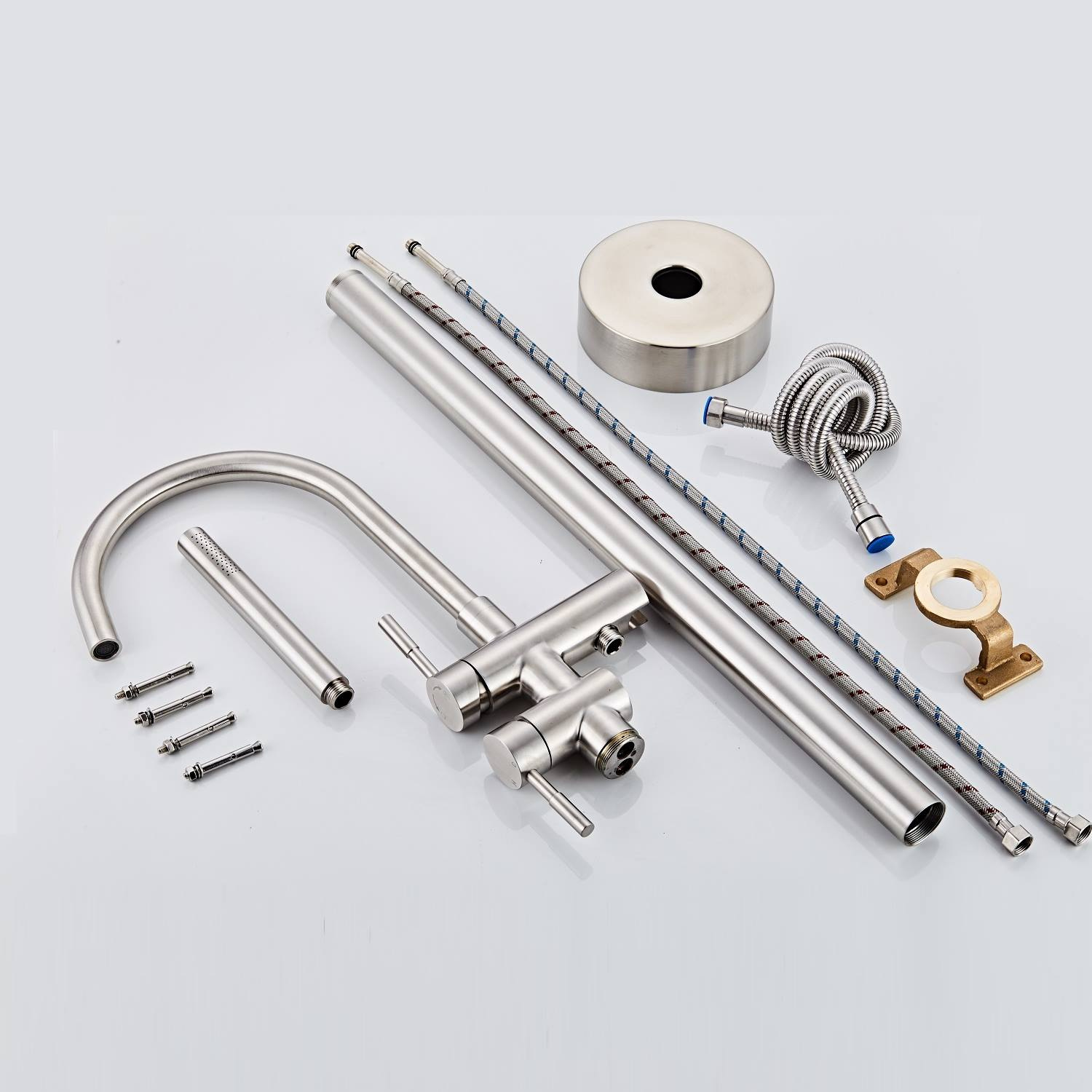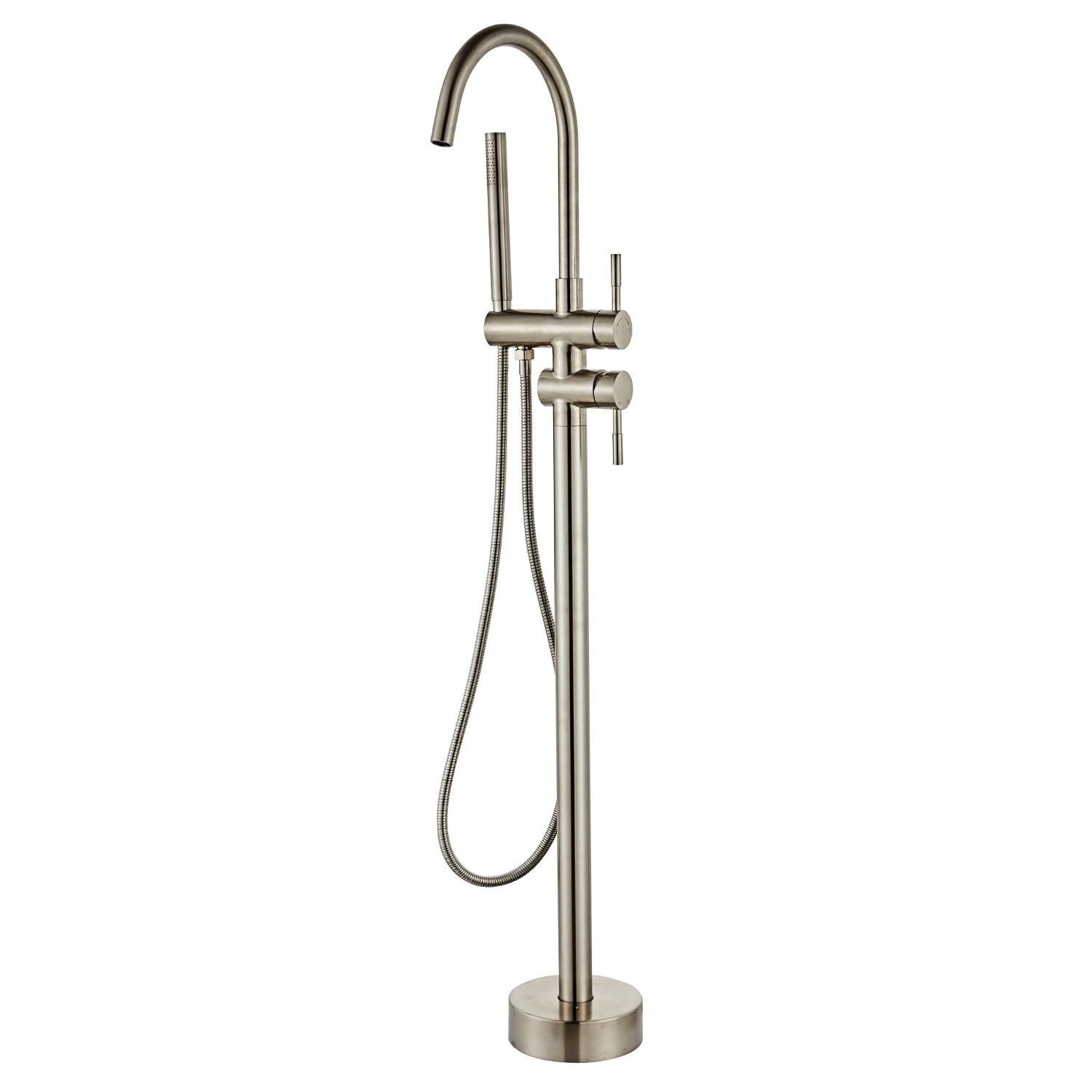 Bij een vrijstaande badkraan hoort een handdouche. Deze is, net als de badkraan, gemaakt van 304 RVS. Een stevig materiaal wat zeer goed in natte ruimtes gebruikt kan worden. De handdouche vorm is gelijk als de vorm van de badkraan, zeer elegant en stijlvol. De handdouche is voorzien van siliconen sproeigaatjes. Deze zijn eenvoudig te ontkalken.