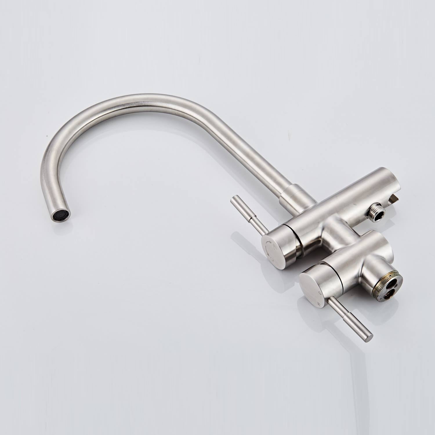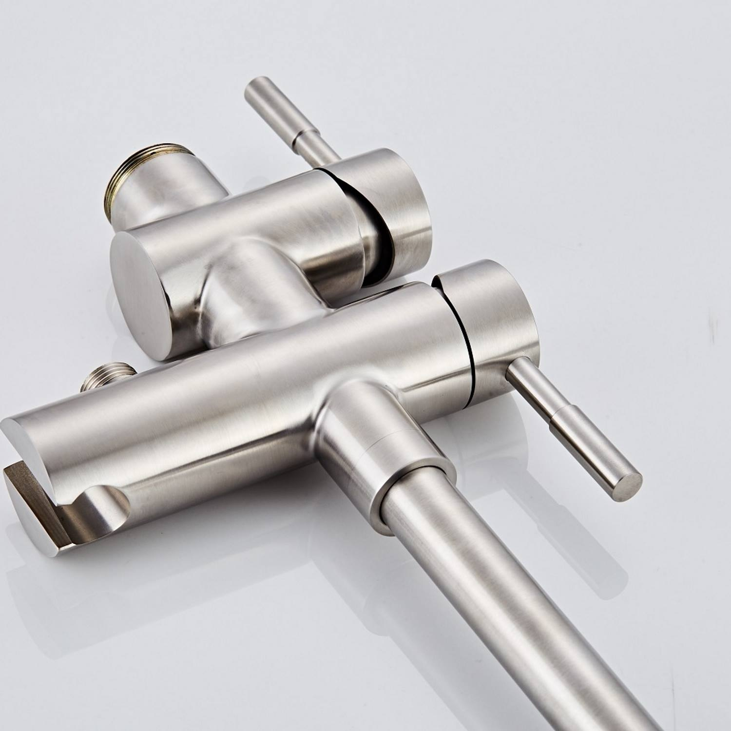 De uitloop van de badkraan is draaibaar zodat het bedieningsgemak als optimaal ervaren wordt. U kunt de kraan instellen zoals u wilt. Eventueel zijn er twee spoelbakken die met één kraan bediend kunnen worden. De temperatuur en het volume zijn met één beweging in te stellen. Door de greep naar voren te halen, bepaalt u het volume water wat uit de uitloop spoelt. Door de greep naar links of rechts te draaien, wordt het water ingesteld op een temperatuur.