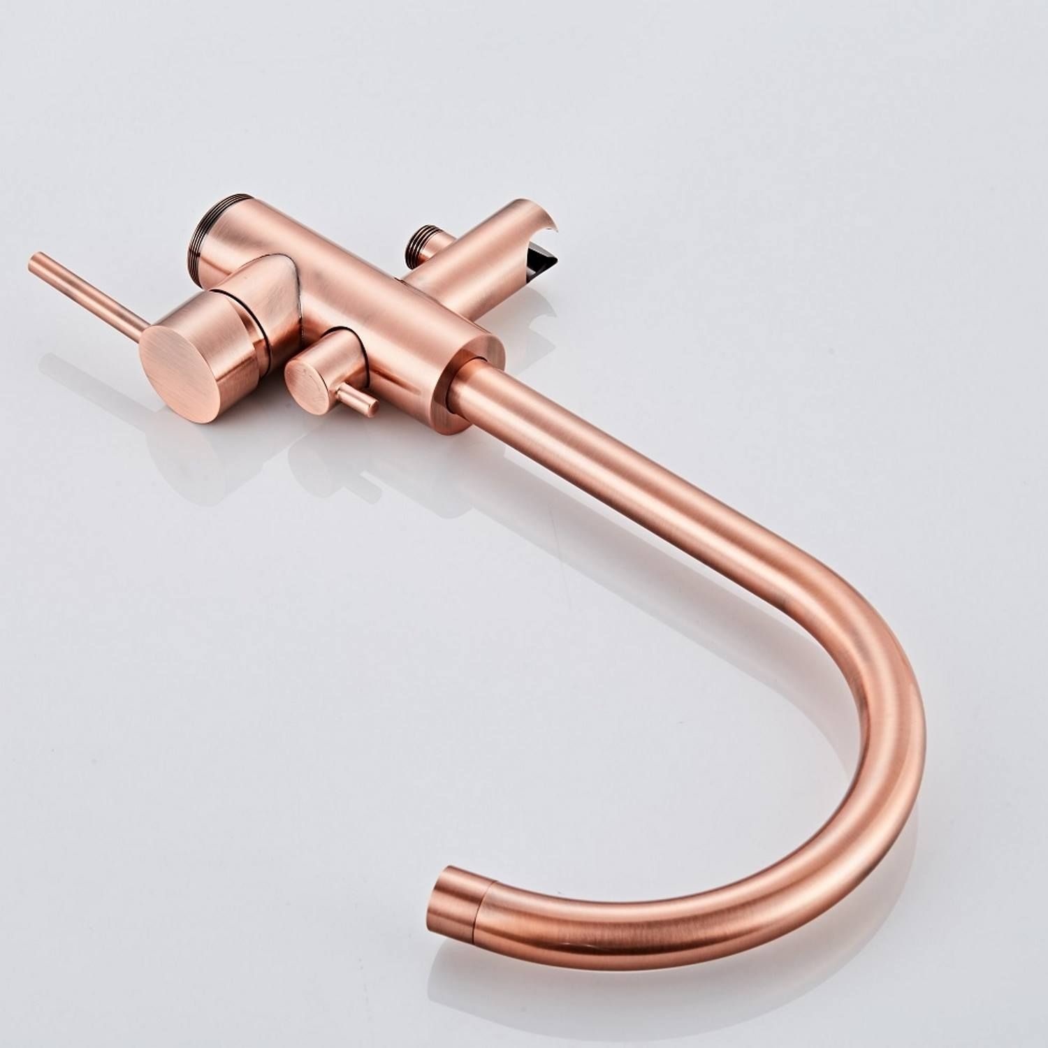 De uitloop van de badkraan is draaibaar zodat het bedieningsgemak als optimaal ervaren wordt. U kunt de kraan instellen zoals u wilt. Eventueel zijn er twee spoelbakken die met één kraan bediend kunnen worden. De temperatuur en het volume zijn met één beweging in te stellen. Door de greep naar voren te halen, bepaalt u het volume water wat uit de uitloop spoelt. Door de greep naar links of rechts te draaien, wordt het water ingesteld op een temperatuur.