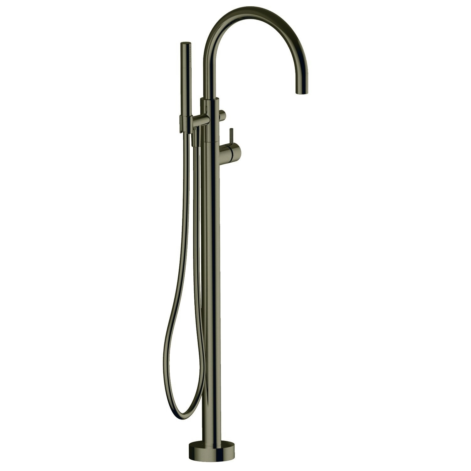 Bij de vrijstaande badkraan wordt een handdouche meegeleverd inclusief een doucheslang van 150 cm. De handdouche is netzoals de kraan gegalvaniseerd. De handdouche is recht van vorm en de kop loopt door vanuit het handvat. De sproeikop is voorzien van gaatjes, zeer elegant,strak en stijlvol.
