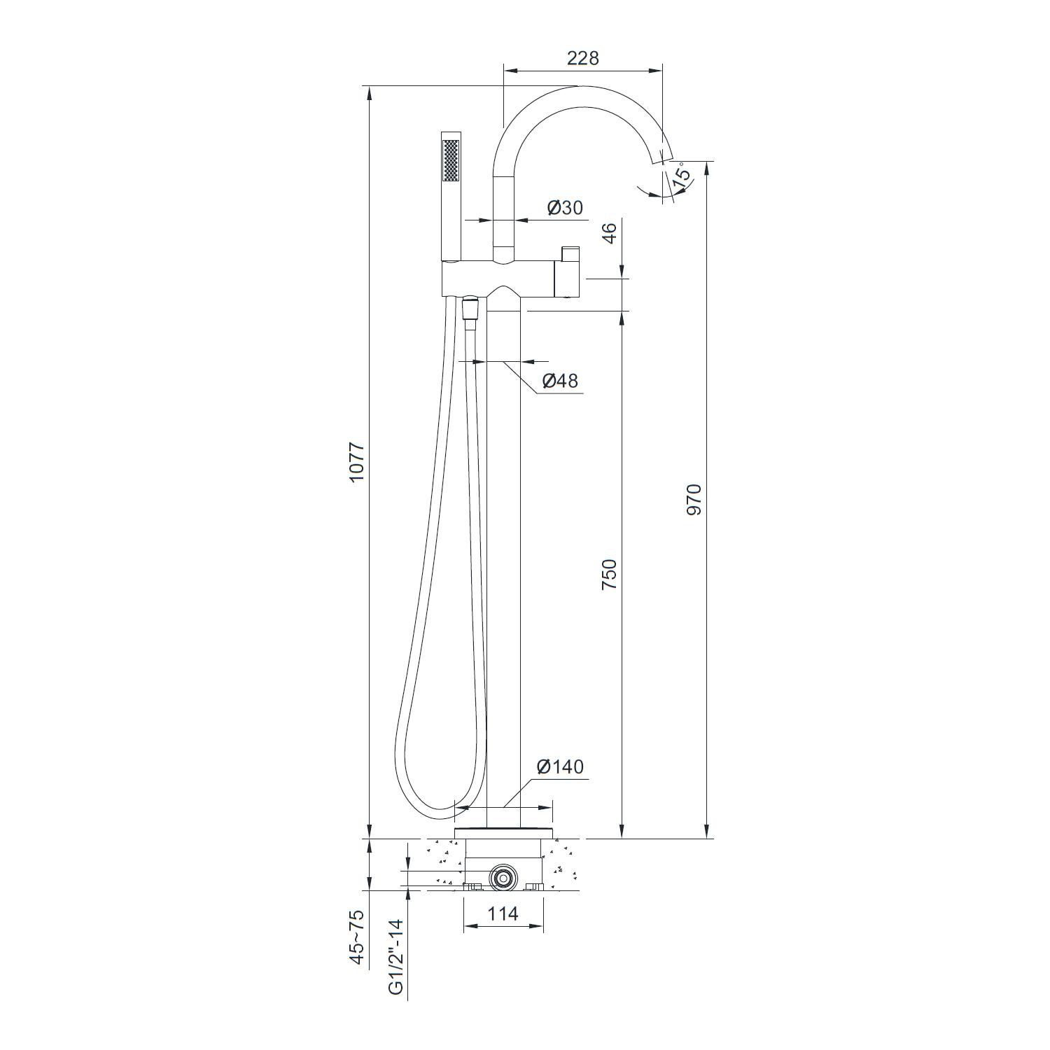 De Badmengkraan bevat een mooie handdouche waarvan het handvat doorloopt in de sproeikop. De Handdouche bevat een flexibele slang en is erg handig om het bad schoon te maken of om uzelf af te spoelen na het baden.