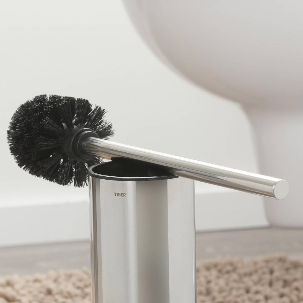 De vrijstaande toiletborstelgarnituur uit de Colar serie van Tiger is uitgevoerd in gepolijst rvs. De toiletborstelgarnituur is voorzien van een kunststof voet voor optimale stabiliteit en bescherming van de ondergrond. De Colar serie bevat tevens een wandangende versie van het toiletborstelgarnituur die aan de muur gemonteerd kan worden met hoogwaardige tape, maar ook een groot aantal aanvullende accessoires voor de badkamer en toiletruimte in dezelfde stijl.