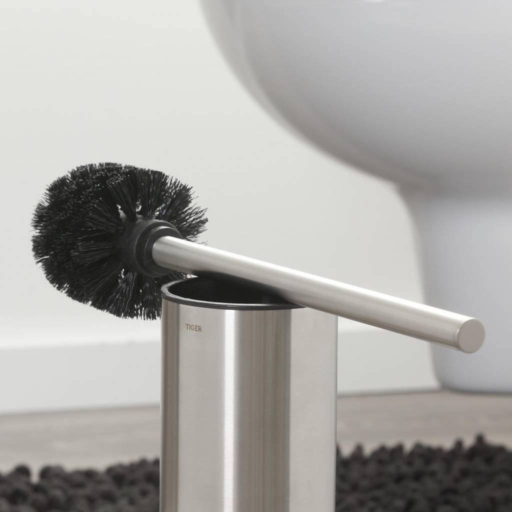 De vrijstaande toiletborstelgarnituur uit de Colar serie van Tiger is uitgevoerd in geborsteld rvs. De toiletborstelgarnituur is voorzien van een kunststof voet voor optimale stabiliteit en bescherming van de ondergrond. De Colar serie bevat tevens een wandhangende versie van het toiletborstelgarnituur die aan de muur gemonteerd kan worden met hoogwaardige tape, maar ook een groot aantal aanvullende accessoires voor de badkamer en toiletruimte in dezelfde stijl.