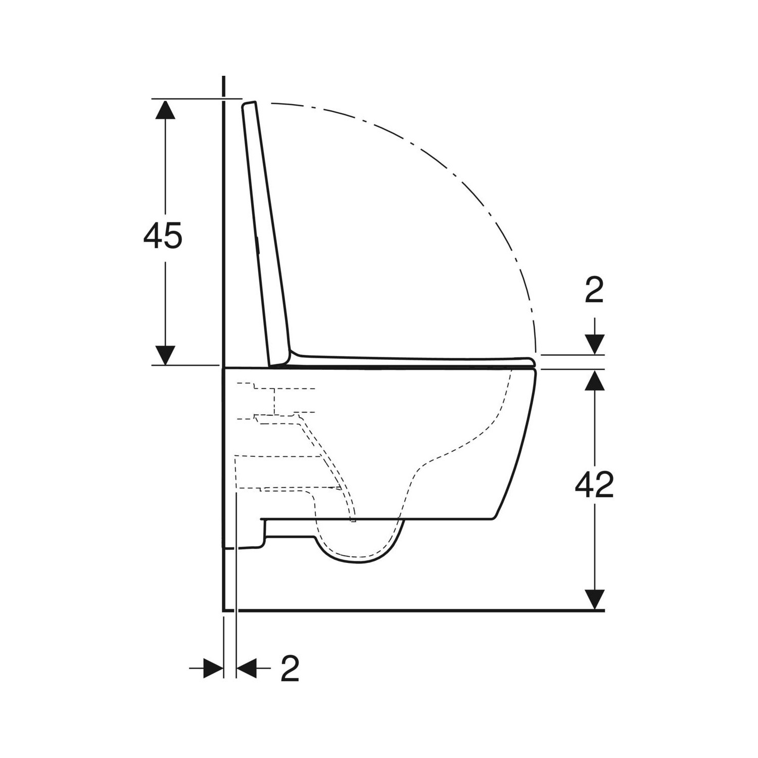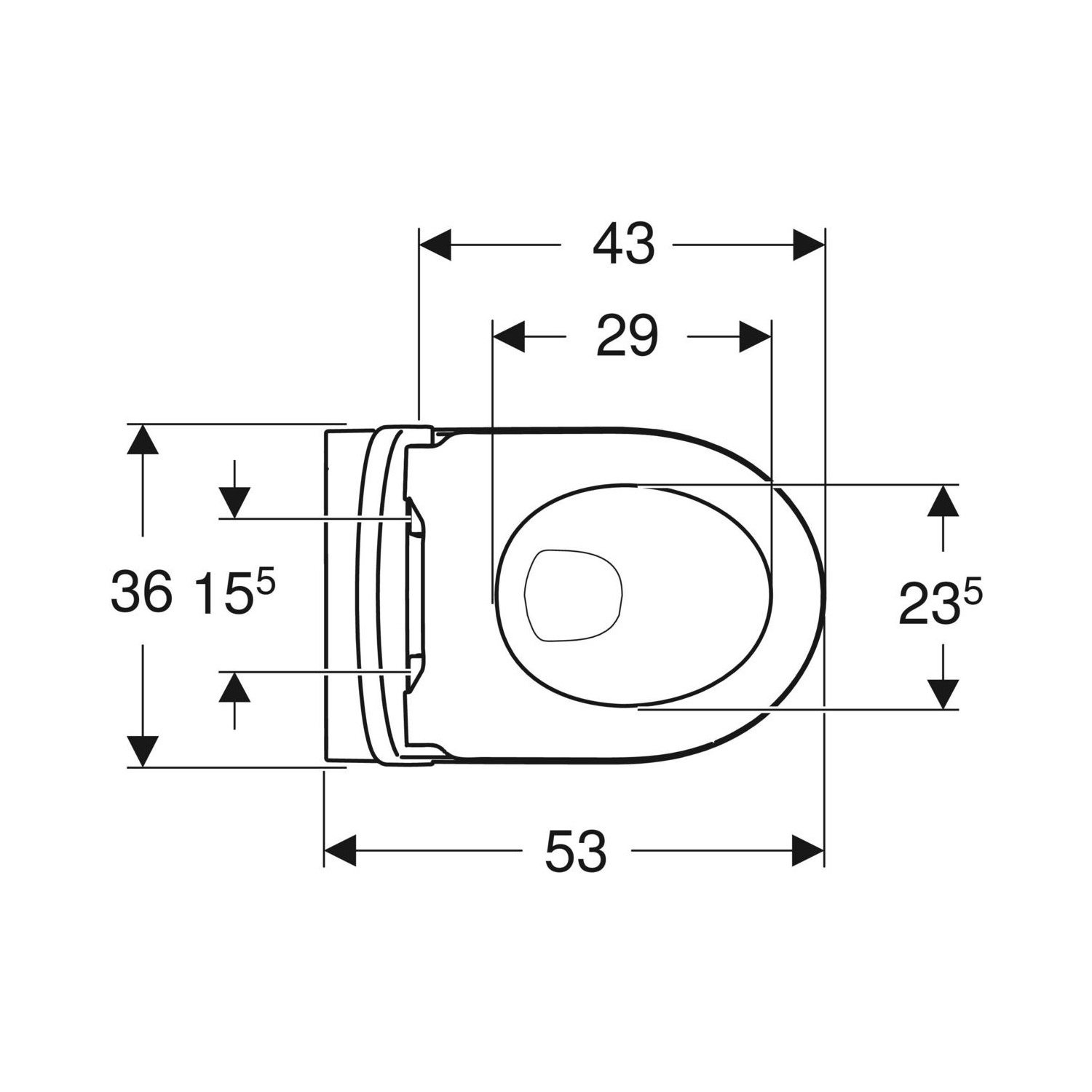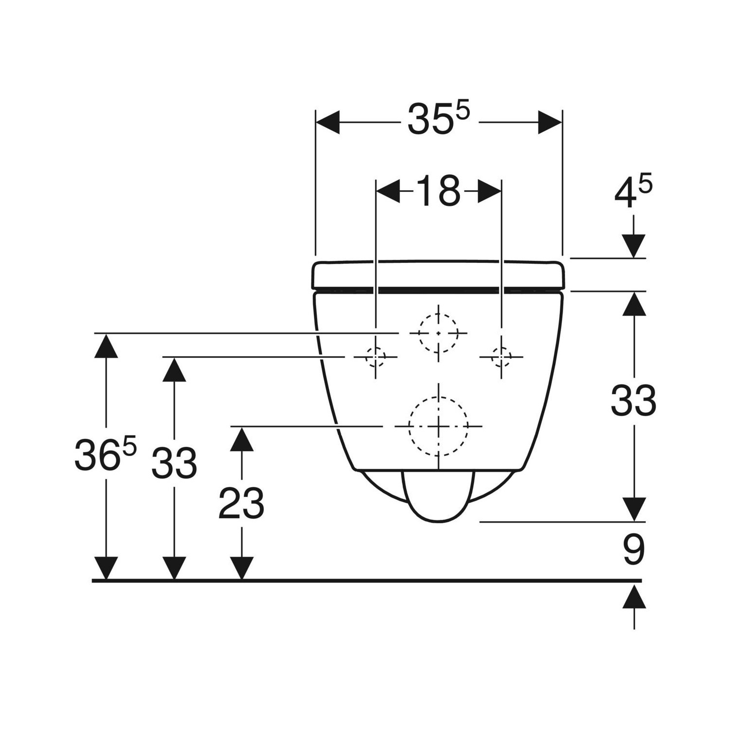Het toilet heeft een hoogte van 33 cm en heeft een breedte van 35.5 cm. De diepte van het toilet is 53 cm en de HoH bevestiging is 18 cm