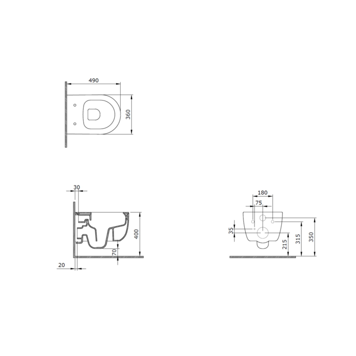 Het toilet is 36 cm breed en 49 cm diep. Het is gemaakt van keramiek.