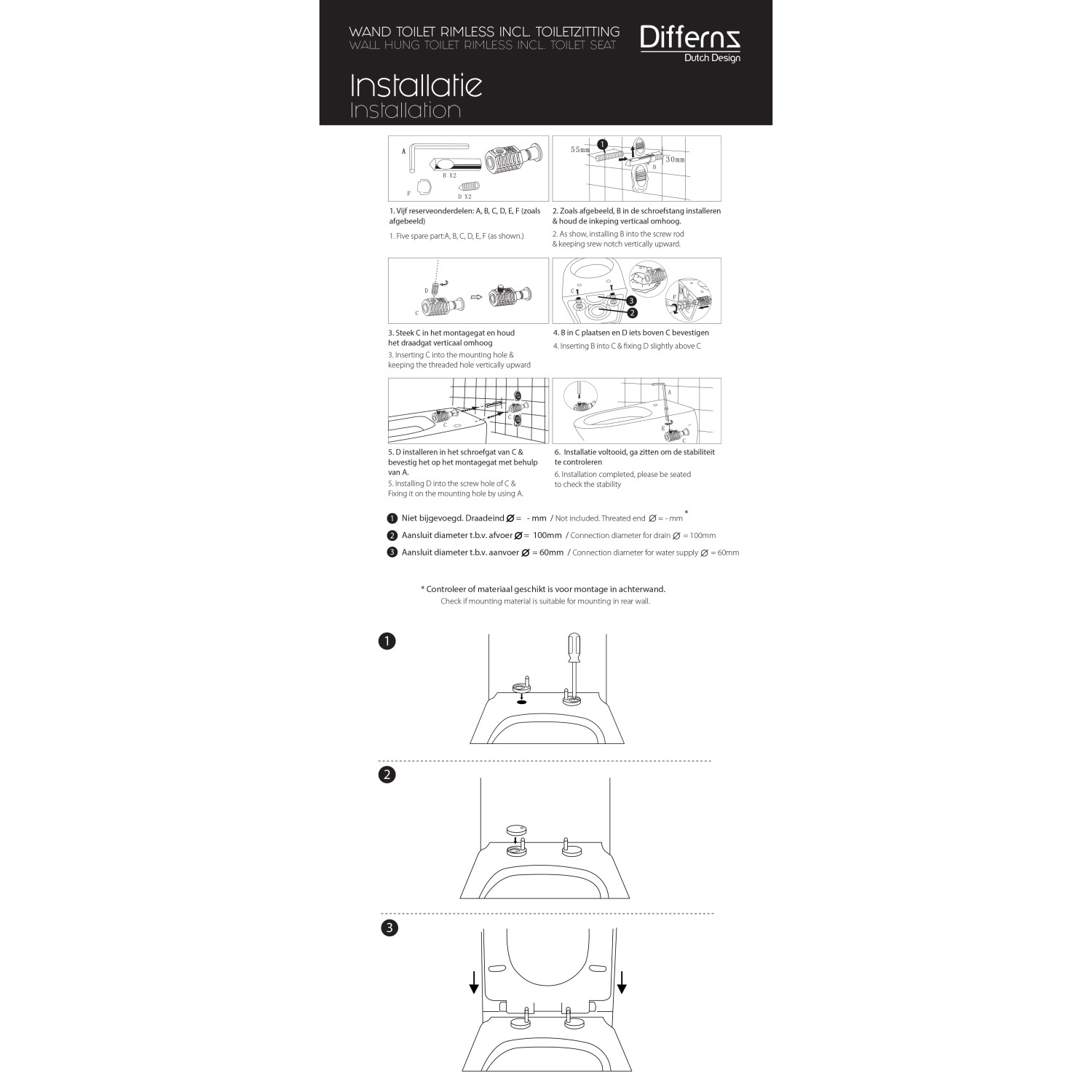 Deze complete wandtoilet is alles in 1 wat u nodig heeft voor uw toilet. Deze set wordt geleverd met softclose toiletbril.