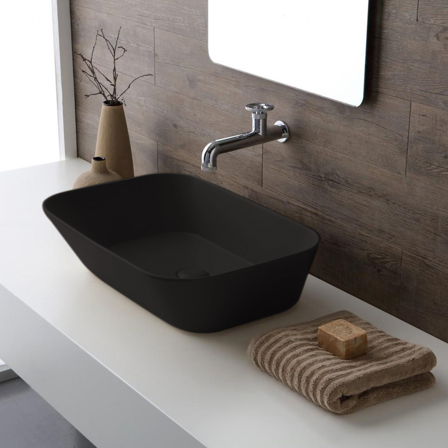 Deze Mees Design opbouw waskom geeft met zijn fraaie mat zwarte uitstraling en unieke vorm een prachtige dimensie aan uw badkamer. Zeker als u de waskom combineert met andere mat zwarte items in uw badkamer. De waskom kent een breedte van 60 cm, diepte van 42 cm en heeft een hoogte van 16.5 cm.