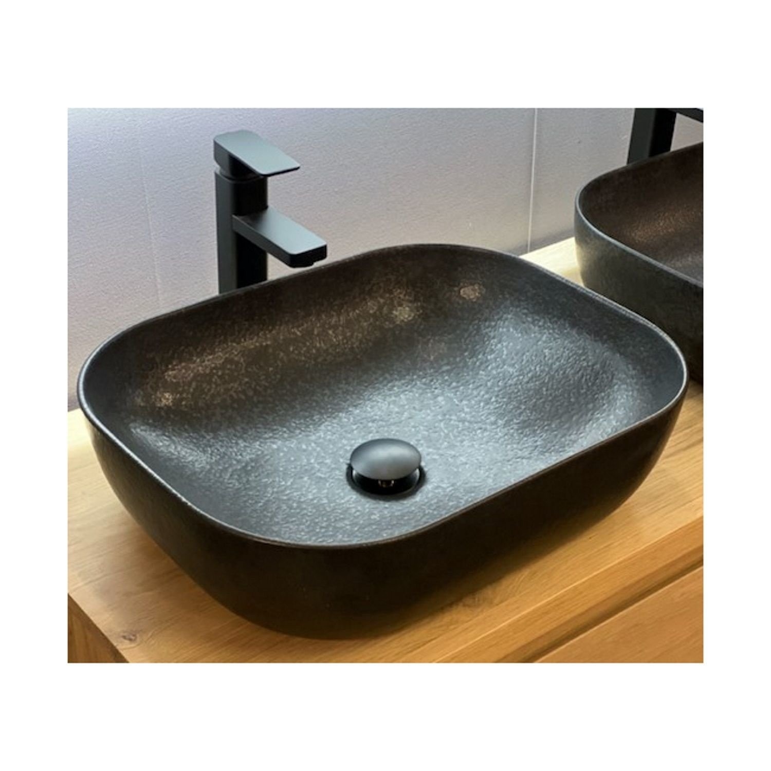 Deze waskom van het merk CasaJoy past met zijn vierkante vorm en donker zwarte kleur perfect in de badkamer van nu! De zwarte kleur van de waskom en zijn strakke vierkante design geven de kom een stoer karakter. Door de waskom te combineren met een kraan en waste naar keuze creëert u de sfeer naar uw wens. Er zijn veel verschillende opties waarmee u de waskom helemaal naar wens kunt stijlen! Door zijn getrommelde afwerking heeft de waskom echt een uniek uiterlijk. De komt krijgt hierdoor een iets grovere look.