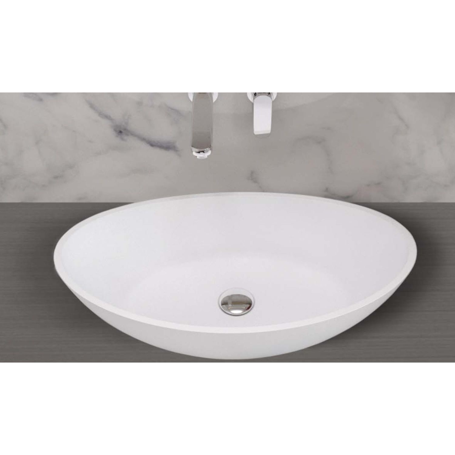 De waskom heeft een breedte van 61.5 cm, diepte van 34 cm en een hoogte van 16 cm. De waskom is gemaakt van Solid Surface materiaal. Dit materiaal is hard en bevat geen poriën of naden. Hierdoor is de waskom goed beschermd tegen ophoping van bacteriën en gemakkelijk te reinigen. Waar schoonmaakmiddelen normaal kunnen zorgen voor een aantasting aan de materialen, zal dit bij een Solid Surface waskom niet gebeuren! Kortom, het materiaal is sterk en duurzaam en zal gemakkelijk schoon te maken zijn.