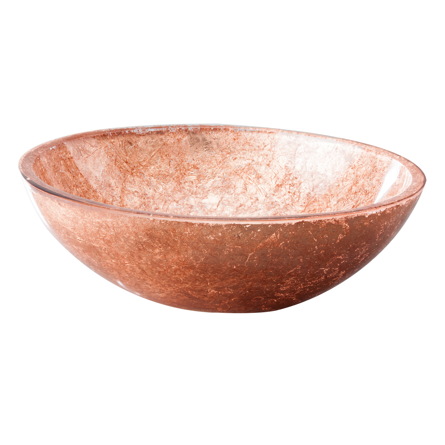 Deze prachtige waskom is van het merk Cipi en komt uit de serie Rame Lavandino. De waskom is gemaakt van een transparante resin waar koperen ''bladeren'' doorheen zijn gemengd. Hierdoor krijgt de waskom zijn prachtige koperen kleur. De waskom heeft een diameter van maar liefst 40 cm met een hoogte van 13 cm. De waskom is afgewerkt met een glanzende laag die ervoor zorgt dat de kom lang mooi blijft.