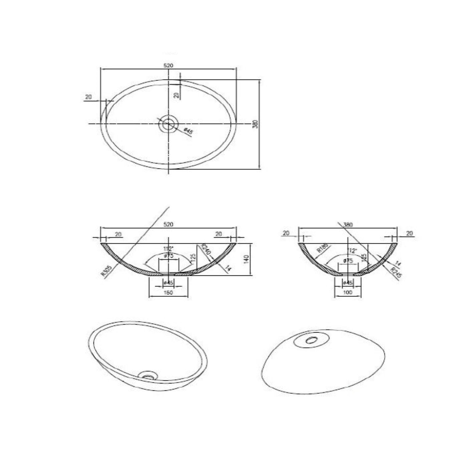 De waskom heeft een mat zwart buitenkant met een mat witte binnenkant en is uitgerust met een gemonteerde clickwaste met een witte afdekkap. Hierdoor past het mooi bij het geheel van het product. De waskom heeft een breedte van 52 cm, een diepte van 38 cm en een hoogte van 14 cm. De randdikte van de waskom bedraagt 2 cm.