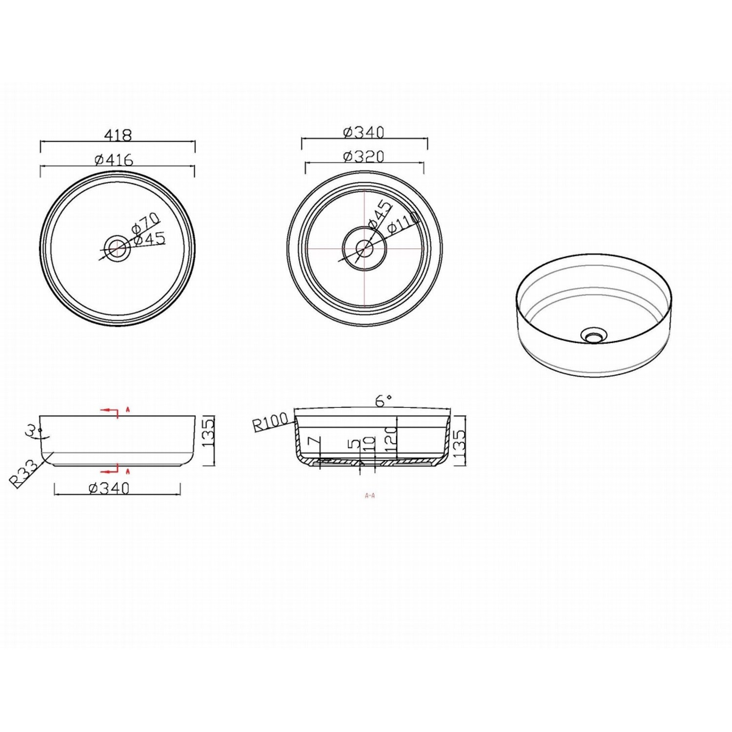De opbouw waskom kunt u bevestigen op een wastafelblad. Het artikel wordt geleverd exclusief kraan, sifon en een afvoerplug. Deze artikelen kunt u onderaan de webpagina voor een meerpijs aan uw bestelling toevoegen, mocht u van deze optie gebruik willen maken. Uiteraard kunt u de wastafel ook zonder deze artikelen aanschaffen. De ronde waskom beschikt over een afvoergat met een diameter van 70 mm.