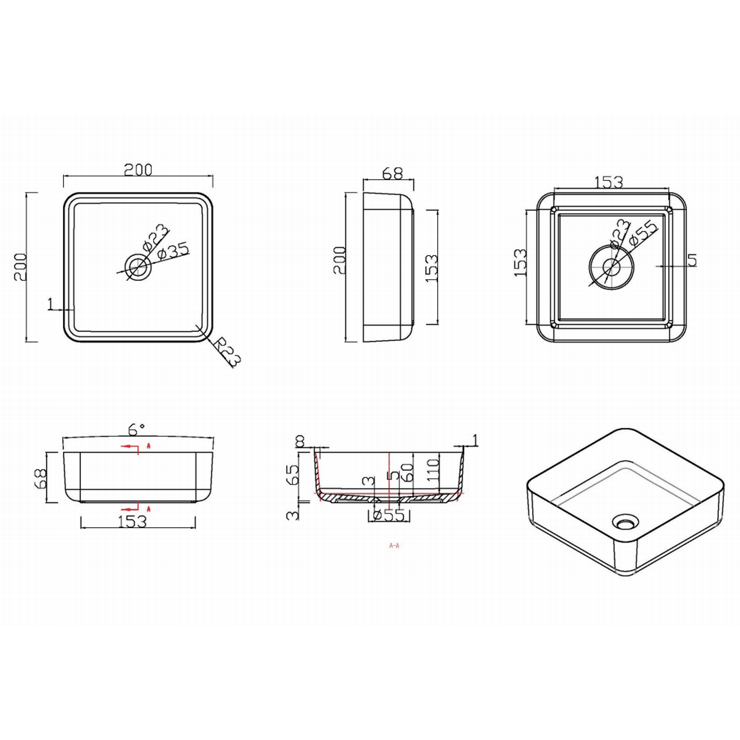 De opbouw waskom kunt u bevestigen op een wastafelblad. Het artikel wordt geleverd exclusief kraan, sifon en een afvoerplug. Deze artikelen kunt u onderaan de webpagina voor een meerpijs aan uw bestelling toevoegen, mocht u van deze optie gebruik willen maken. Uiteraard kunt u de wastafel ook zonder deze artikelen aanschaffen. De vierkante waskom beschikt over een afvoergat met een diameter van 55 mm.