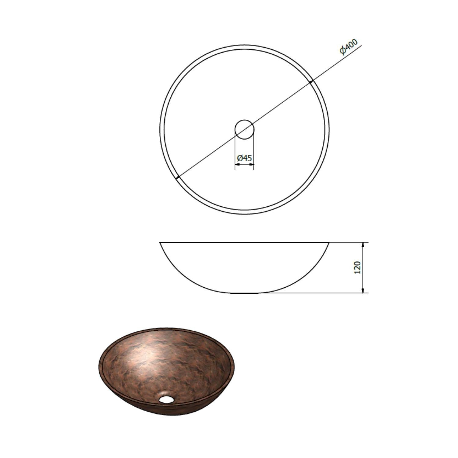 Met een hoogte van 12 cm kunt u gebruik maken van hoge wastafelkraan of een inbouw wastafelkraan. De waskom heeft een diameter van 40 cm. Er is geen overloop en kraangat ingebouwd in deze waskom. U plaatst deze mooie kom op een wastafelblad.